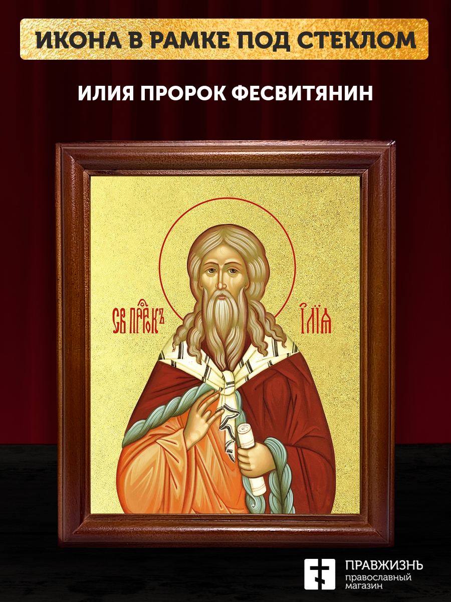 Икона Илия Фесвитянин пророк с золочением, деревянная рамка со стеклом 15х18х2 см 077