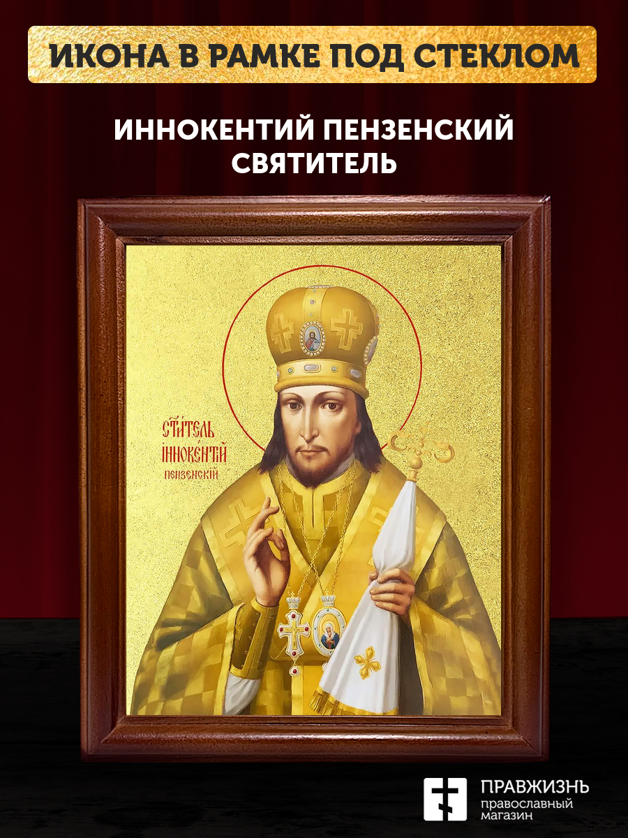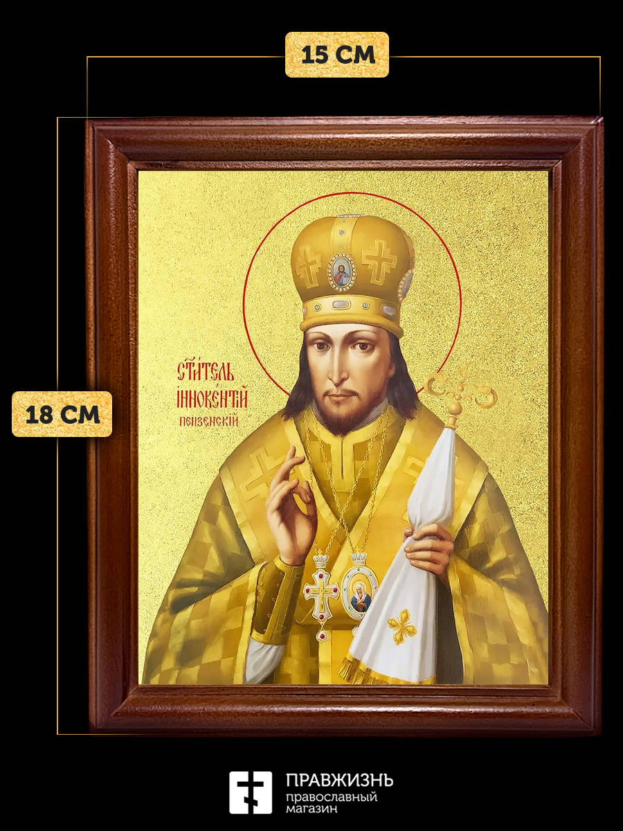 Икона Иннокентий Пензенский святитель с золочением, деревянная рамка со стеклом 15х18х2 см 1235
