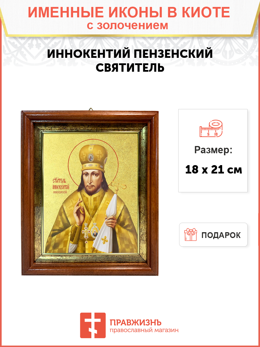Икона 1 шт, киот-пенал со стеклом 1 шт, подарок 1 шт