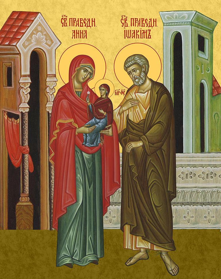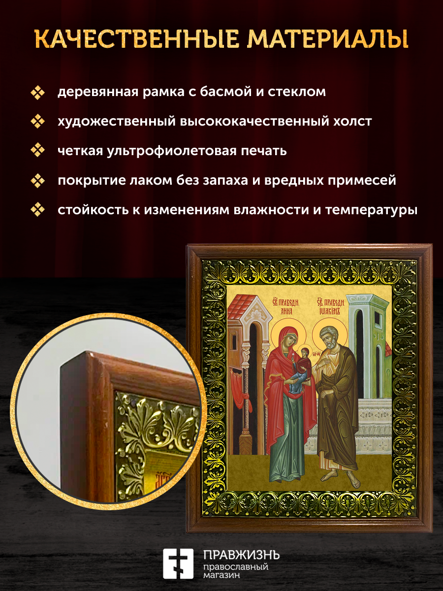 Икона Иоаким и Анна праведные, деревянная рамка с басмой и стеклом 18х21х2,5 см 078