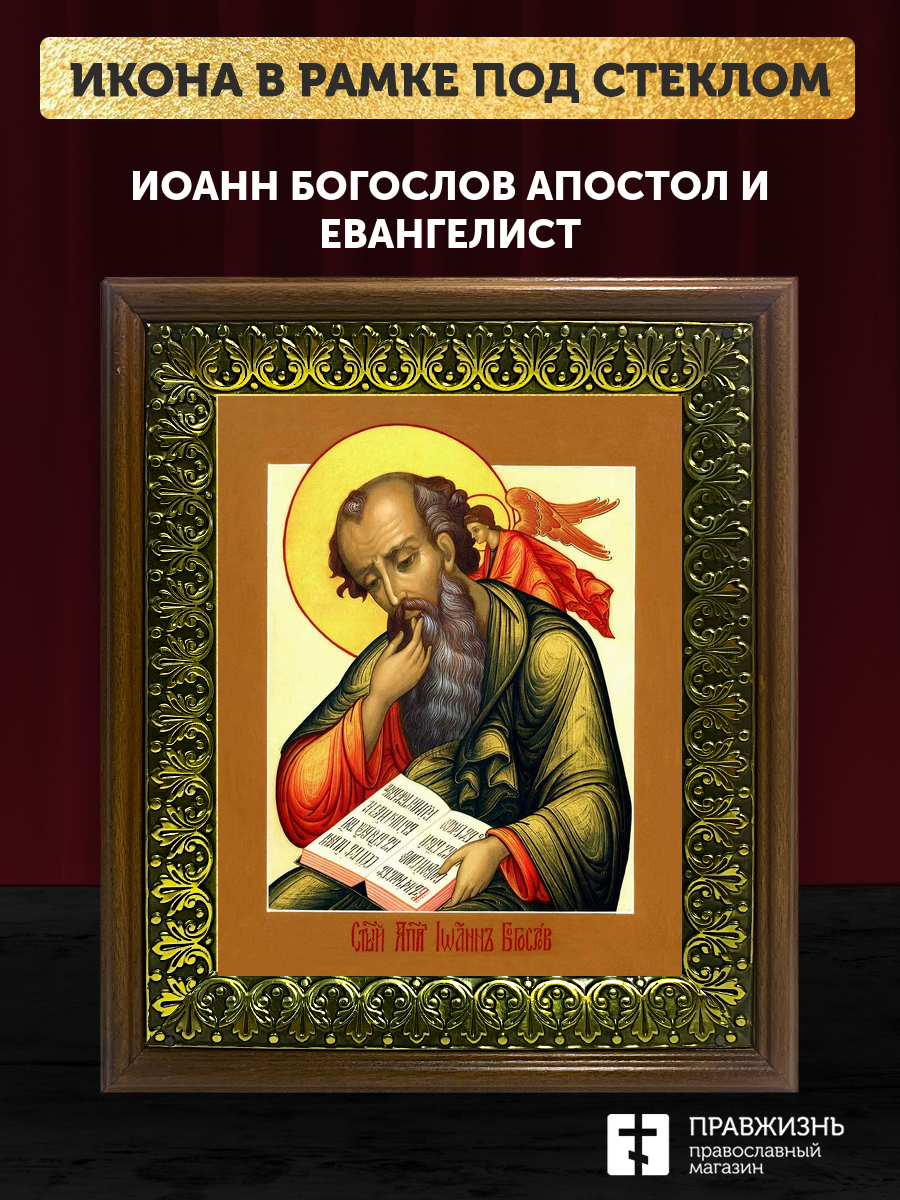Икона Иоанн Богослов апостол и евангелист, деревянная рамка с басмой и стеклом 18х21х2,5 см 190