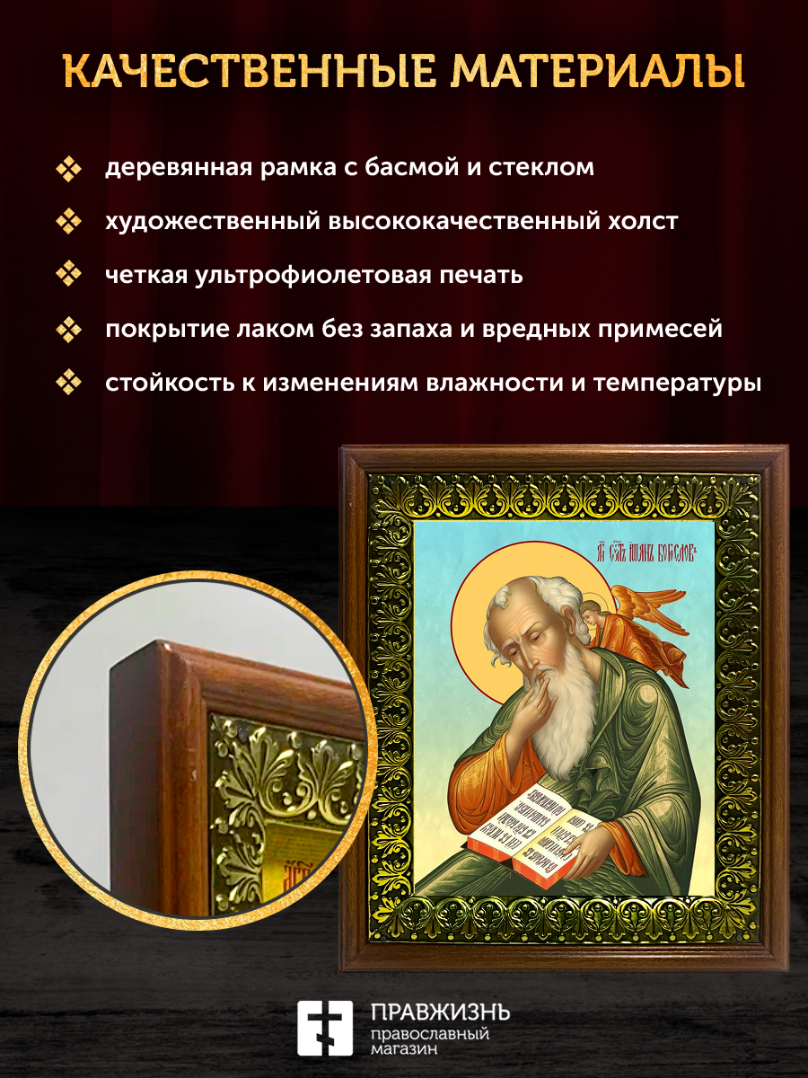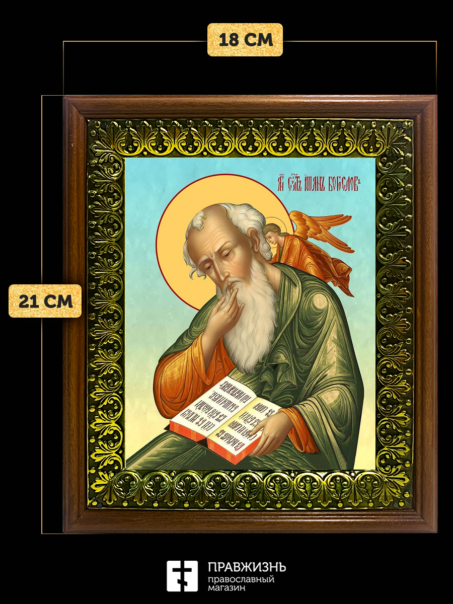 Икона Иоанн Богослов апостол и евангелист, деревянная рамка с басмой и стеклом 18х21х2,5 см 190
