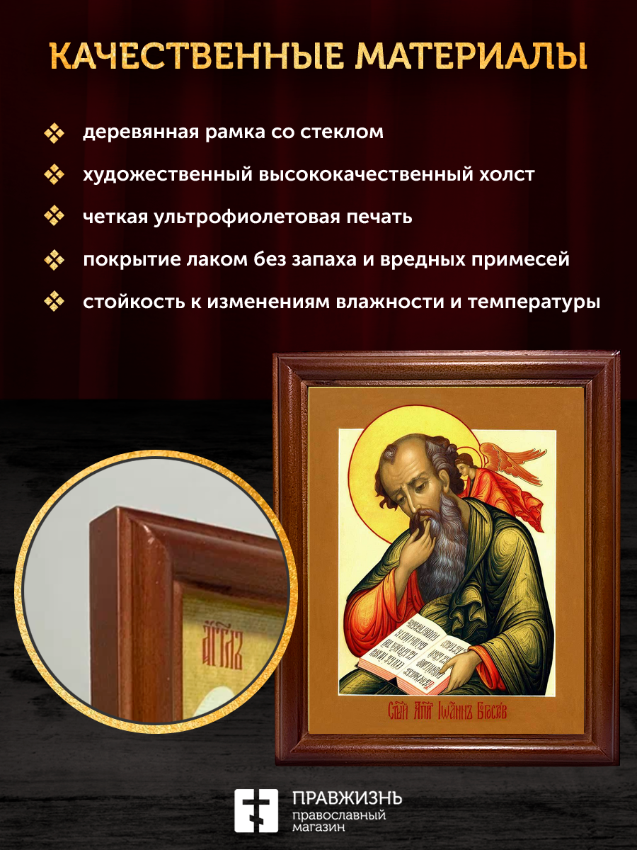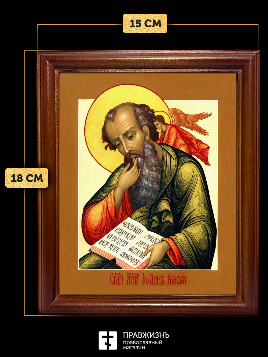 Икона Иоанн Богослов апостол и евангелист, деревянная рамка со стеклом 15х18х2 см 190