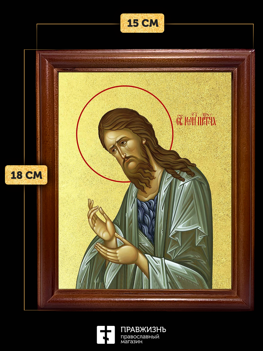 Икона Иоанн пророк Предтеча и Креститель Господень с золочением, деревянная рамка со стеклом 15х18х2