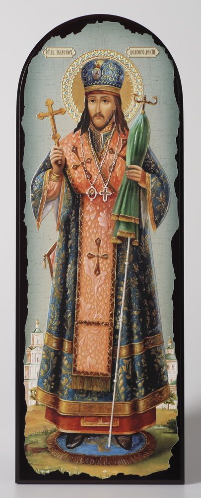 Икона на МДФ 18х50 арочная, объёмная печать, лак Иосаф Белгородский 2