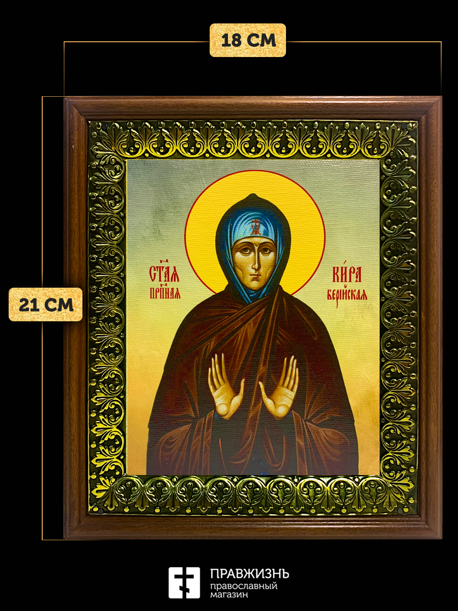 Икона Кира Берийская преподобная, деревянная рамка с басмой и стеклом 18х21х2,5 см 156