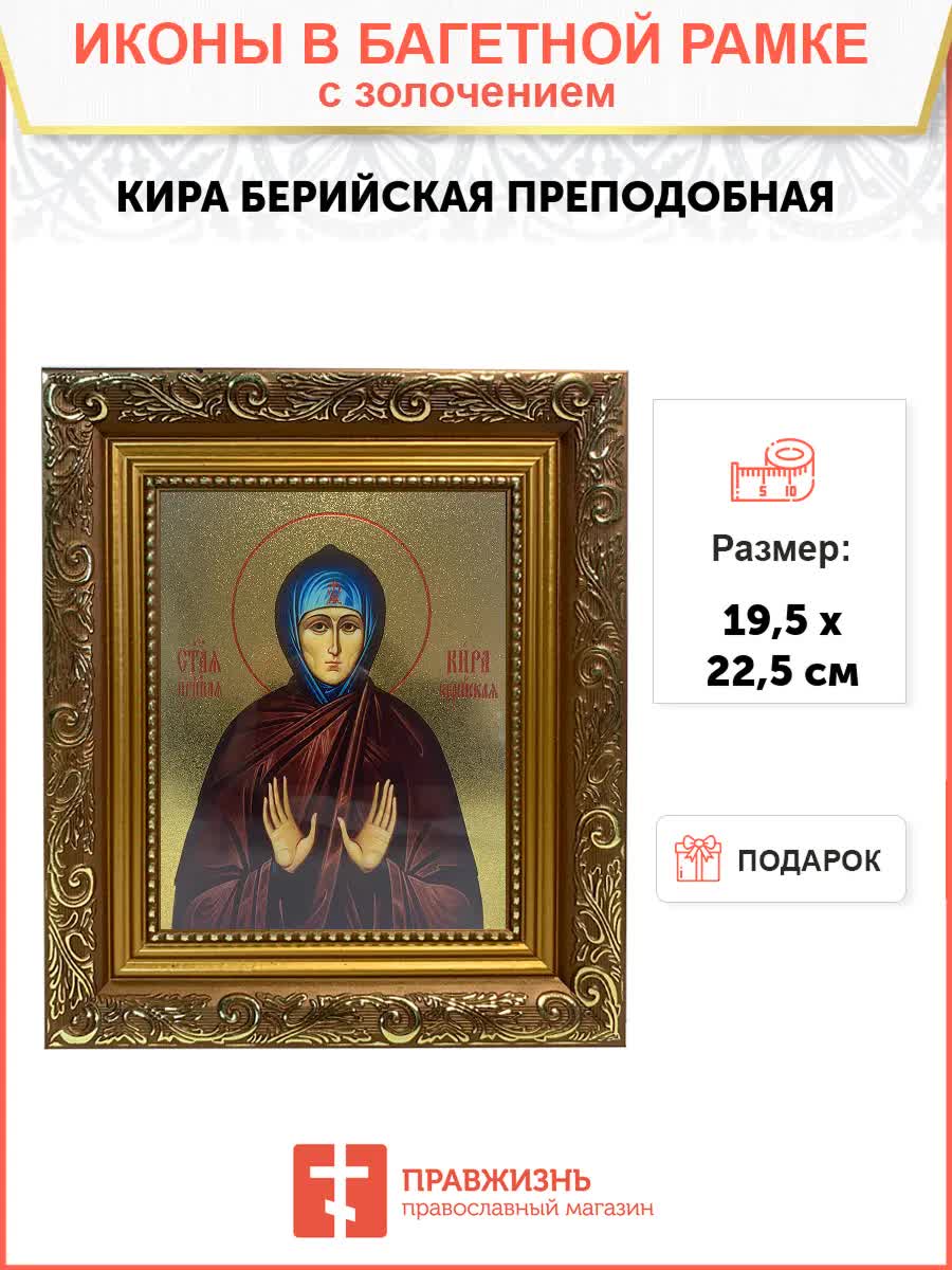 Икона Кира Берийская преподобная, широкая рамка 19,5х22,5х2 см 156