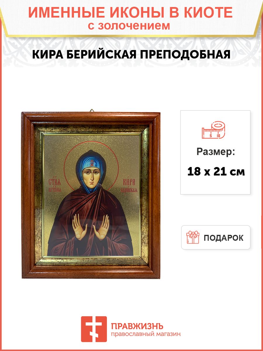 Икона Кира Берийская преподобная в киоте 18х21х4 см 156