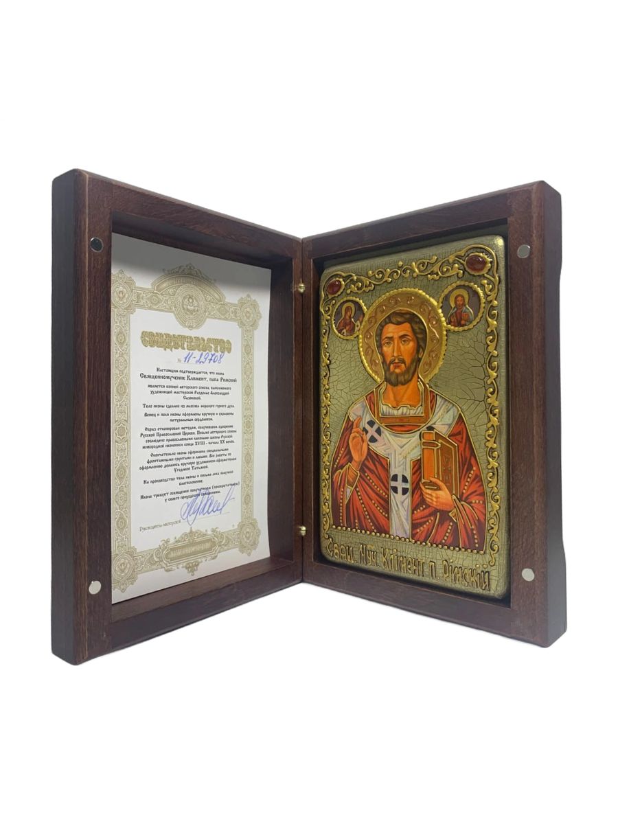 Настольная икона ''Священномученик Климент, папа Римский'' на мореном дубе