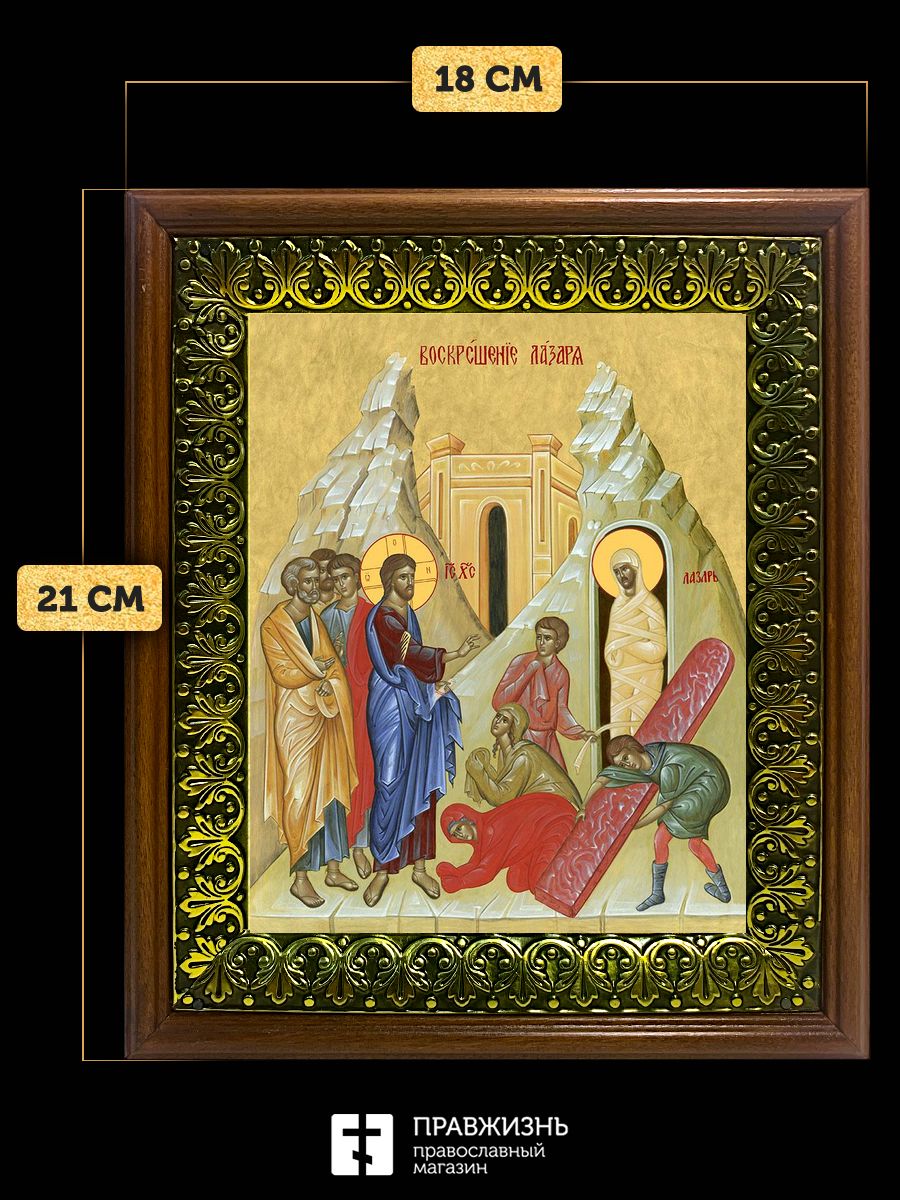 Икона Воскрешение святого Лазаря Четверодневного, деревянная рамка с басмой и стеклом 18х21х2,5 см 1