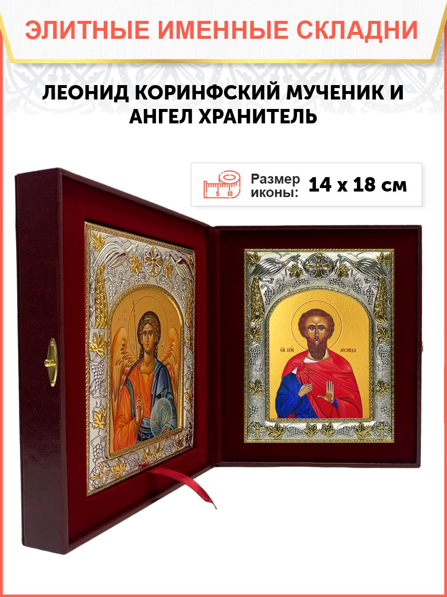 Икона складень Леонид Коринфский и Ангел Хранитель 091