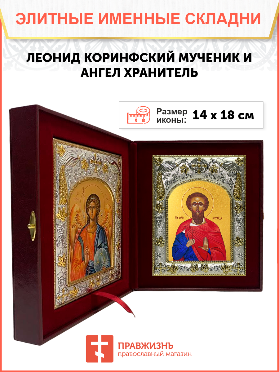 Икона складень Леонид Коринфский и Ангел Хранитель 091