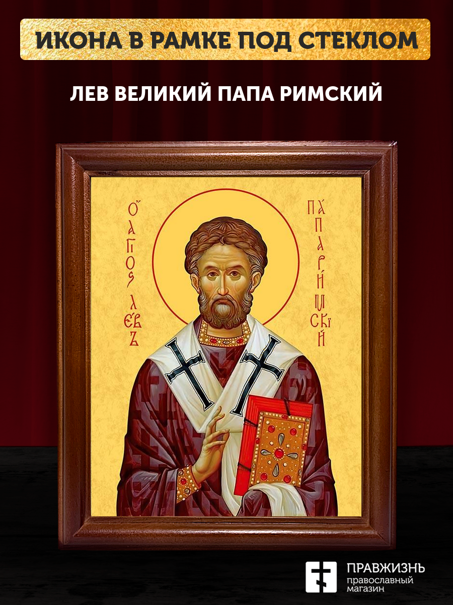 Икона Лев папа Римский, деревянная рамка со стеклом 15х18х2 см 1147