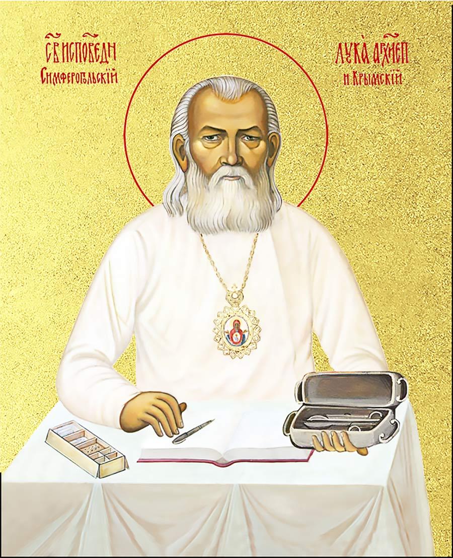 Икона "Лука Войно-Ясенецкий", свт. Симферопольский и Крымский, с золочением поталью, 09Л4-УЛ