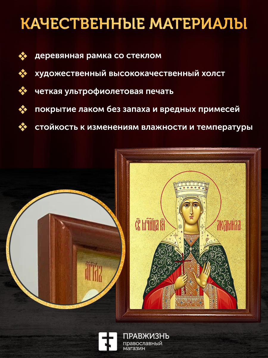 Икона Людмила Чешская благоверная княгиня с золочением, деревянная рамка со стеклом 15х18х2 см 095