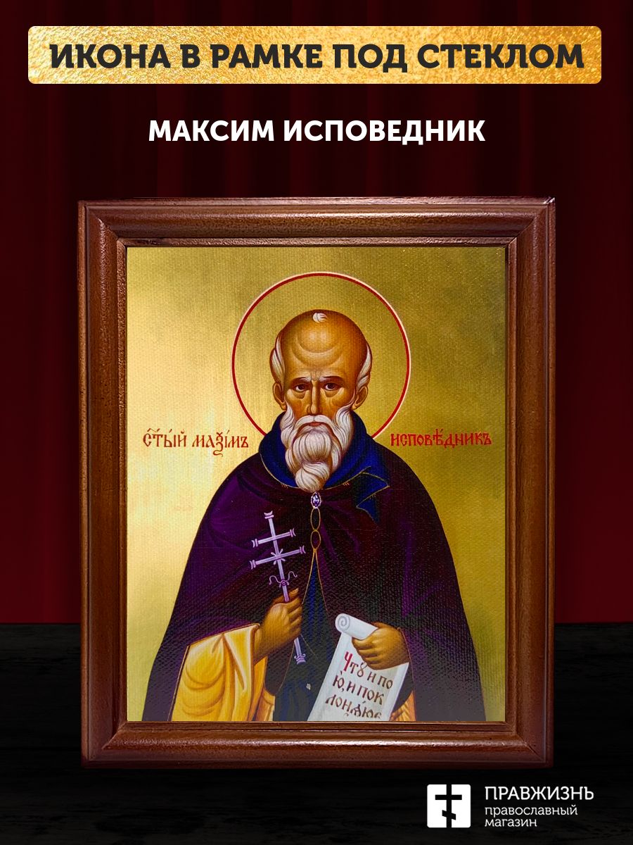 Икона Максим исповедник, деревянная рамка со стеклом 15х18х2 см 096