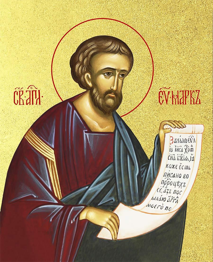Икона Марк апостол и евангелист с золочением, деревянная рамка с басмой и стеклом 18х21х2,5 см 100