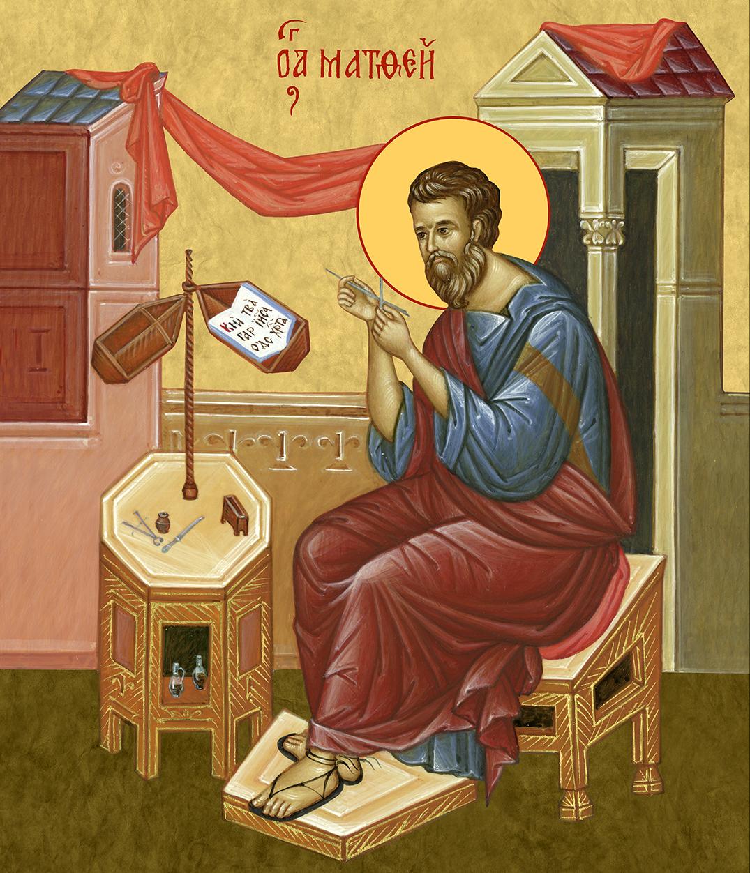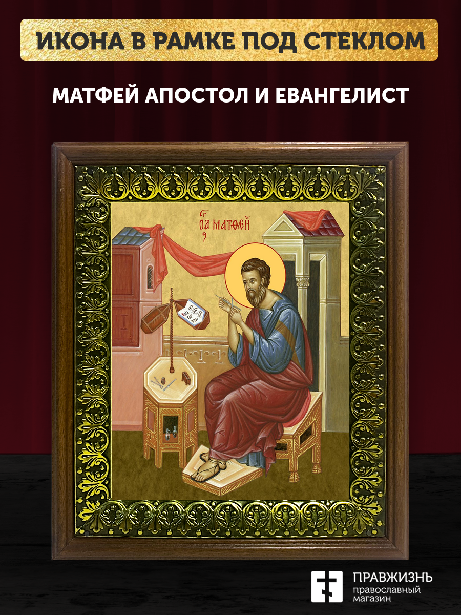Икона Матфей апостол и евангелист, деревянная рамка с басмой и стеклом 18х21х2,5 см 101