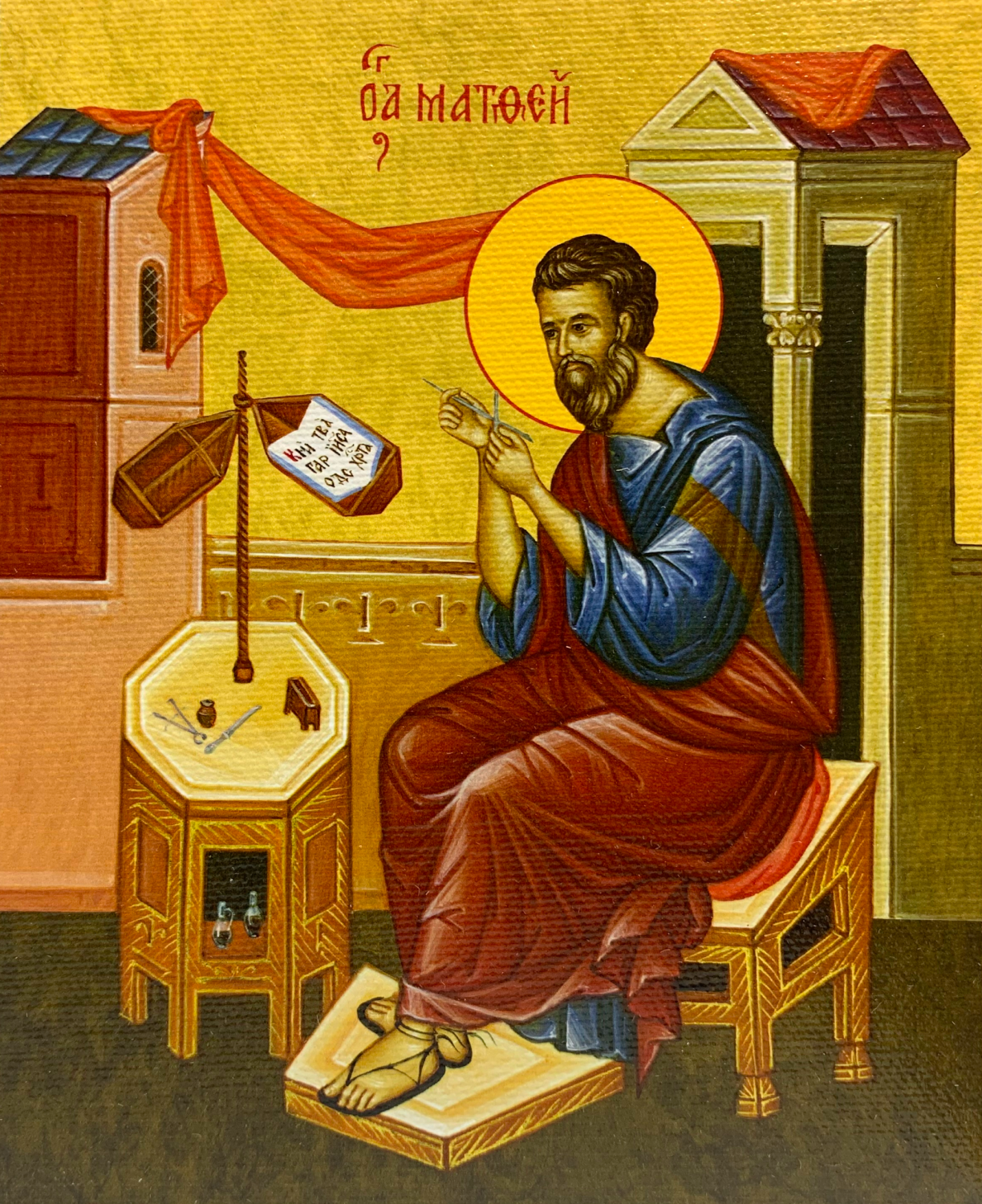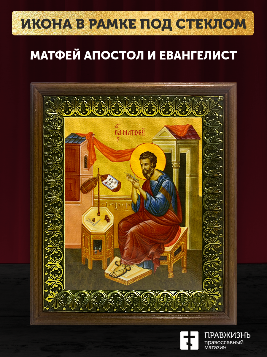 Икона Матфей апостол и евангелист, деревянная рамка с басмой и стеклом 18х21х2,5 см 101