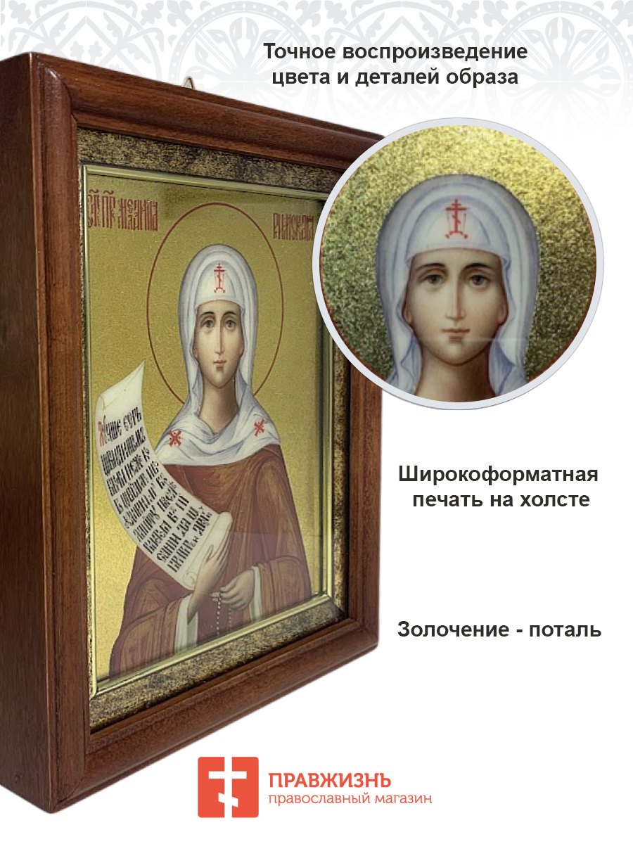 Икона Мелания Римляныня преподобная с золочением в киоте 18х21х4 см