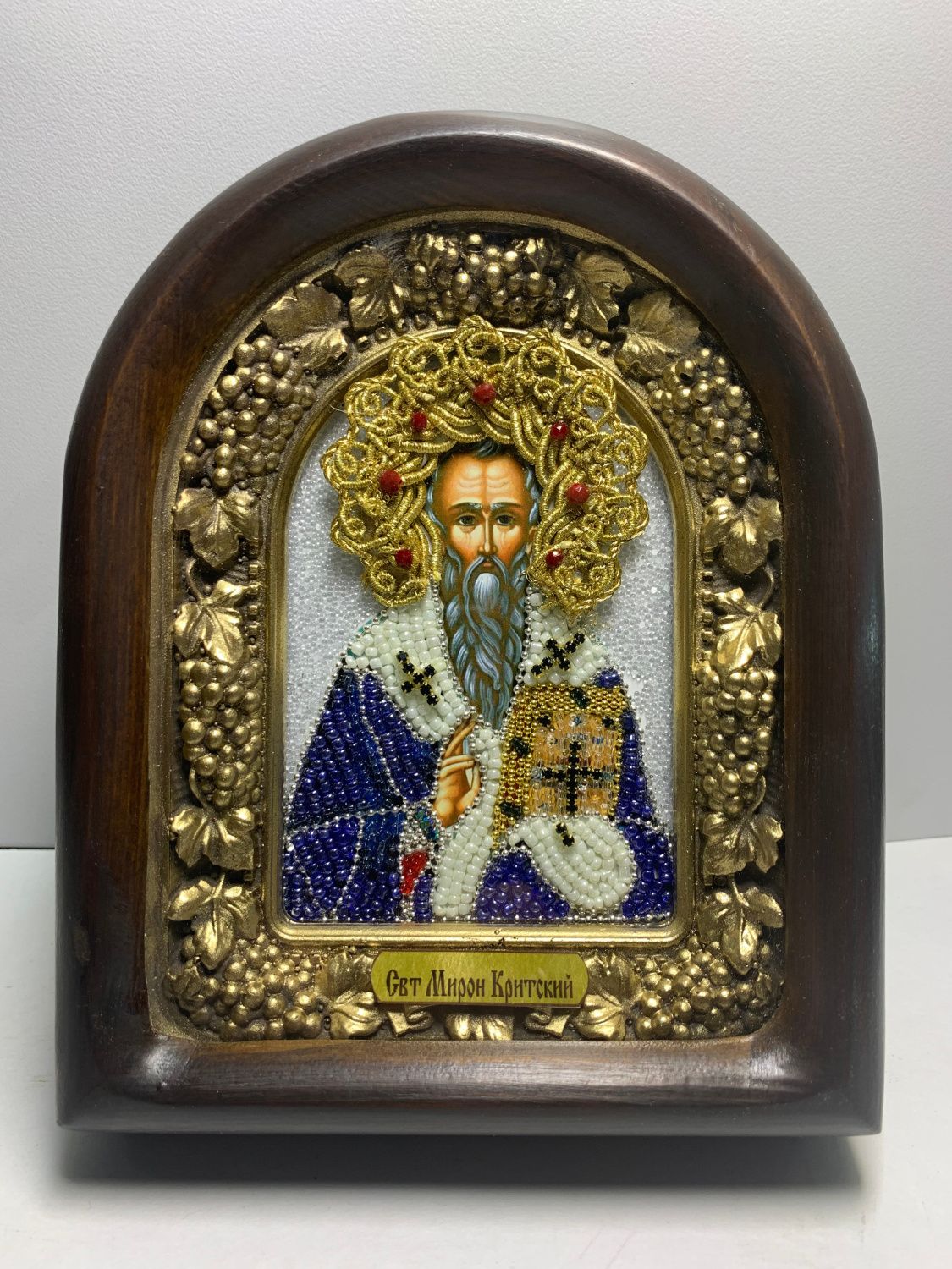 175 Именная икона Мирон Критский бисер, дерево