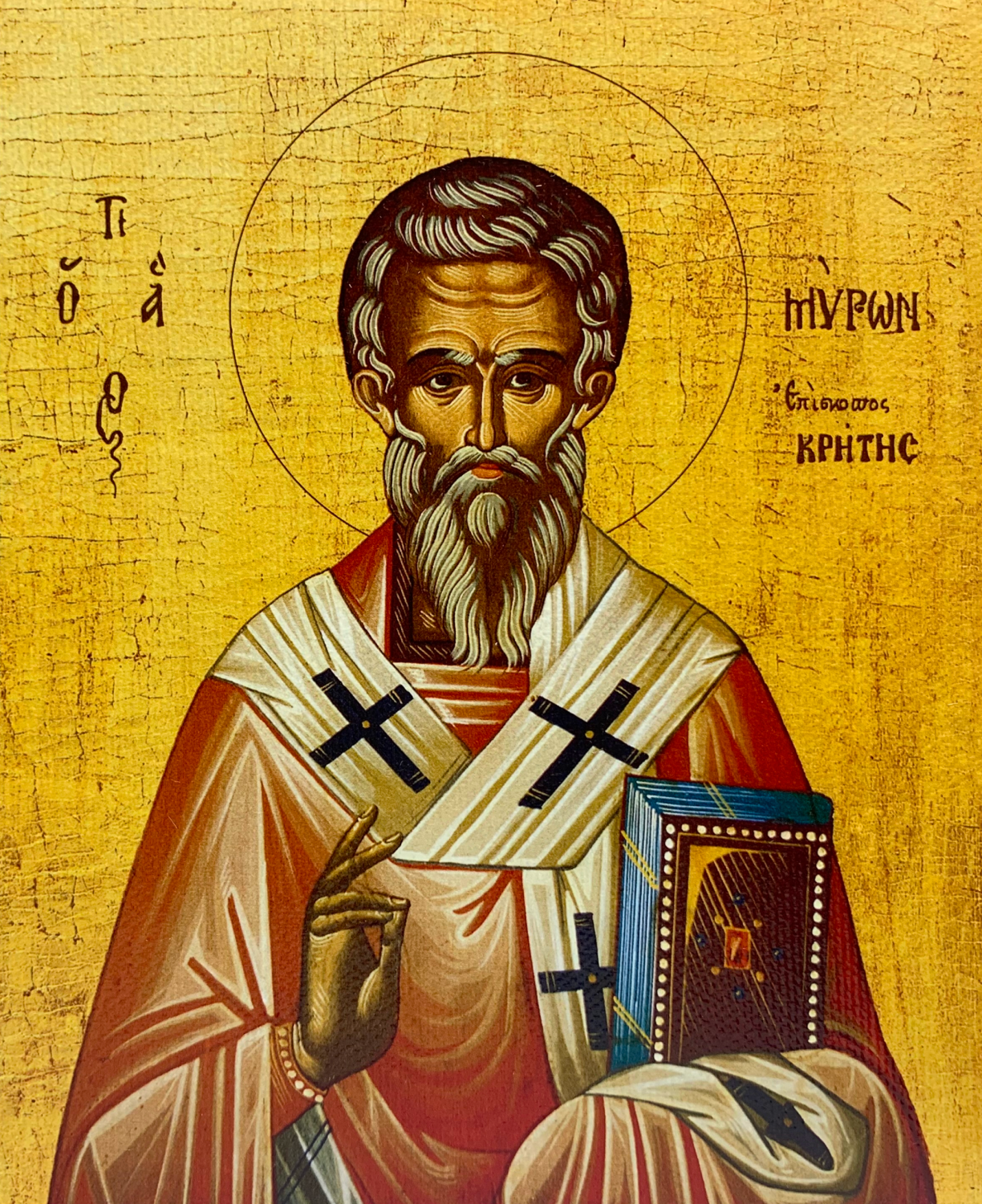 Икона Мирон Критский святитель, деревянная рамка с басмой и стеклом 18х21х2,5 см 175