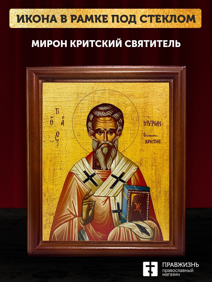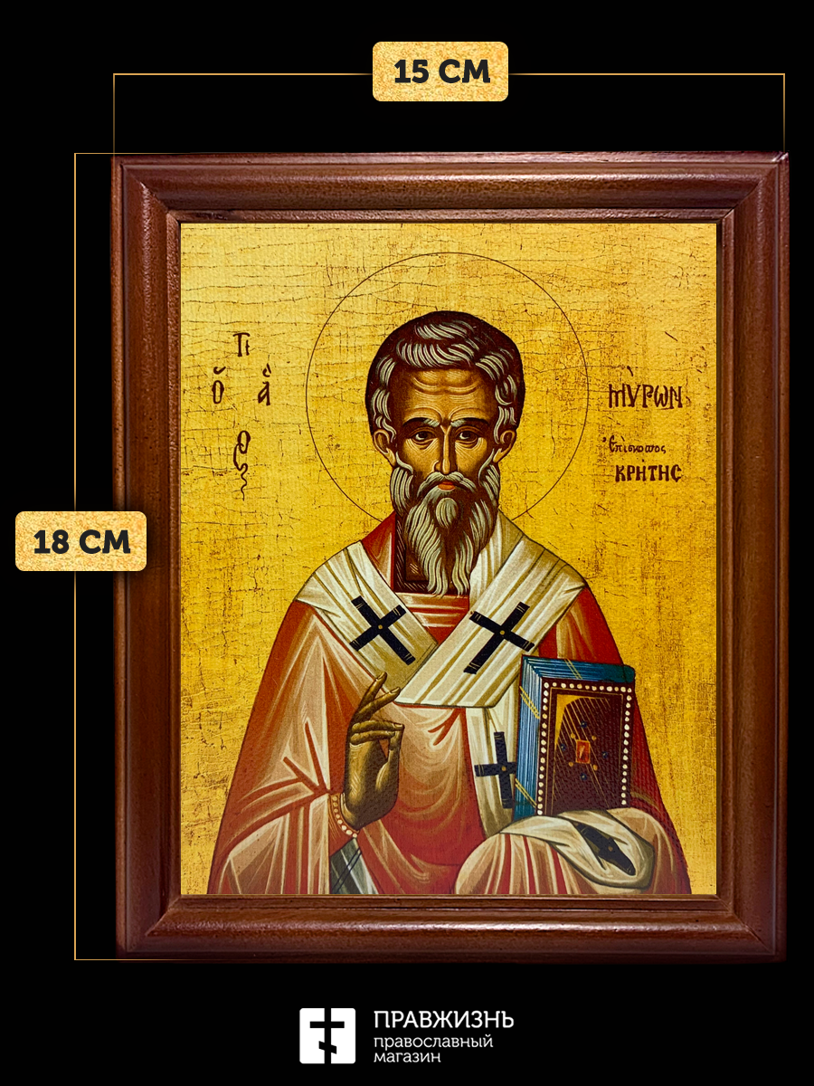 Икона Мирон Критский святитель, деревянная рамка со стеклом 15х18х2 см 175