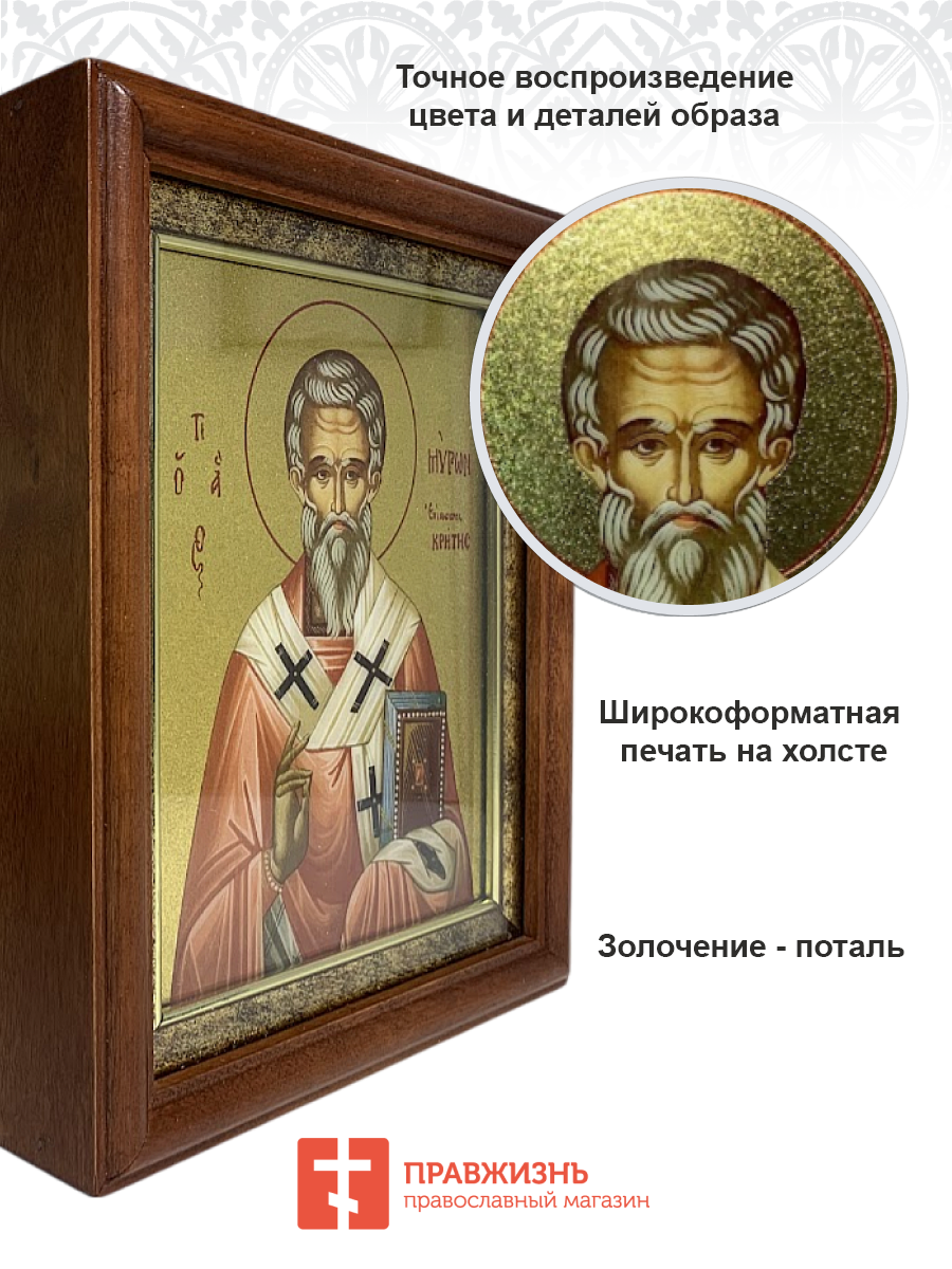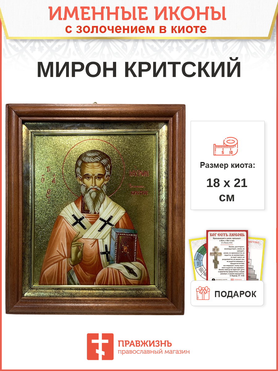 Икона Мирон Критский святитель с золочением в киоте 18х21х4 см