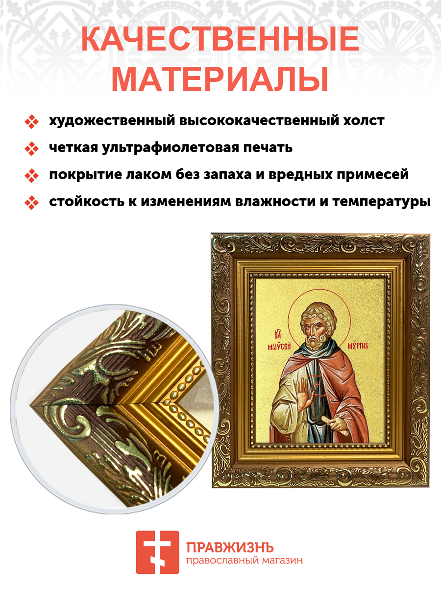 Икона "Моисей Мурин", св. прп., с золочением поталью, 09М2-УЛ