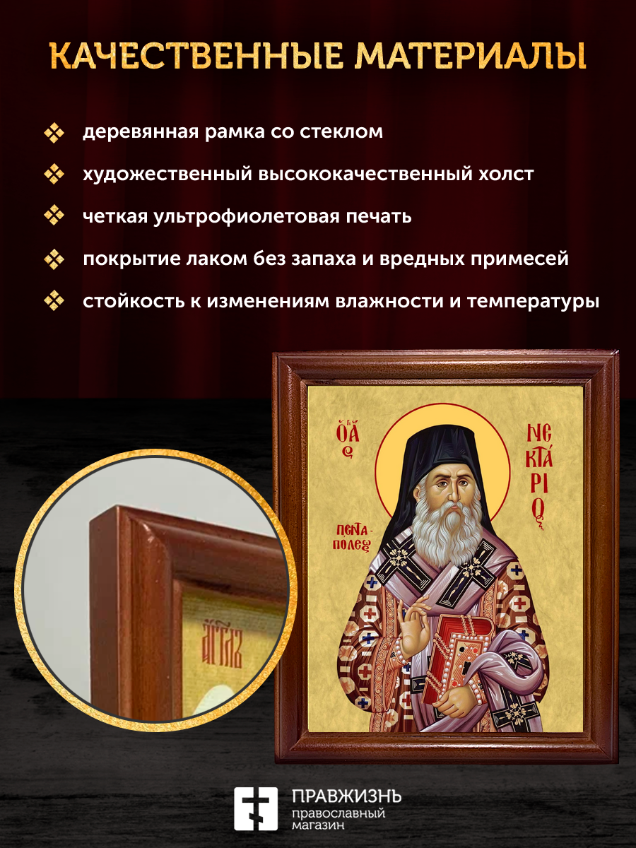 Икона Нектарий Эгинский митрополит, деревянная рамка со стеклом 15х18х2 см 406
