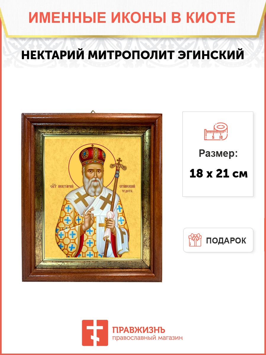 Икона 1 шт, киот-пенал со стеклом 1 шт, подарок 1 шт