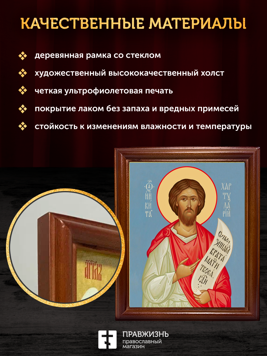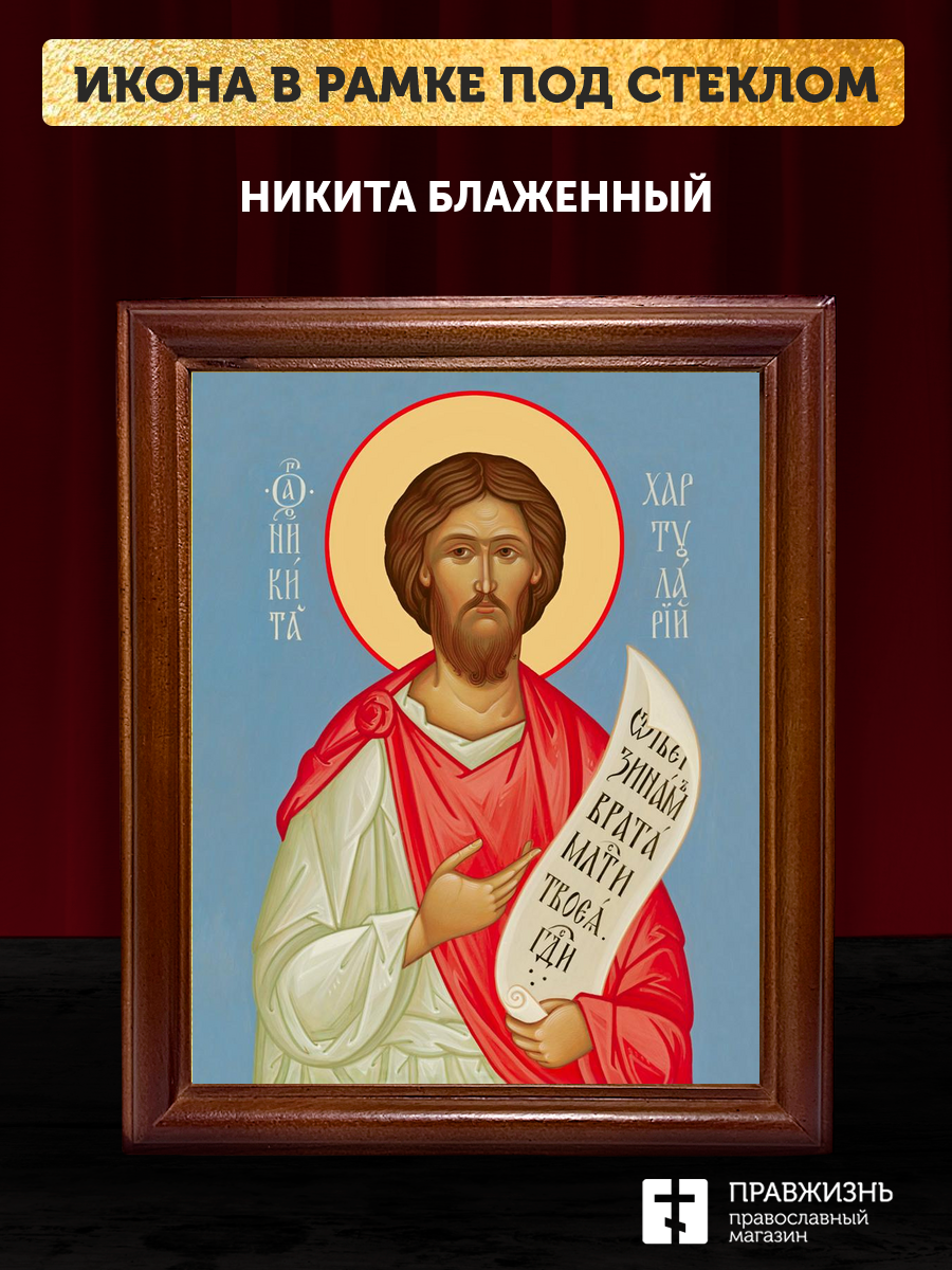 Икона Никита Константинопольский блаженный, деревянная рамка со стеклом 15х18х2 см 1041