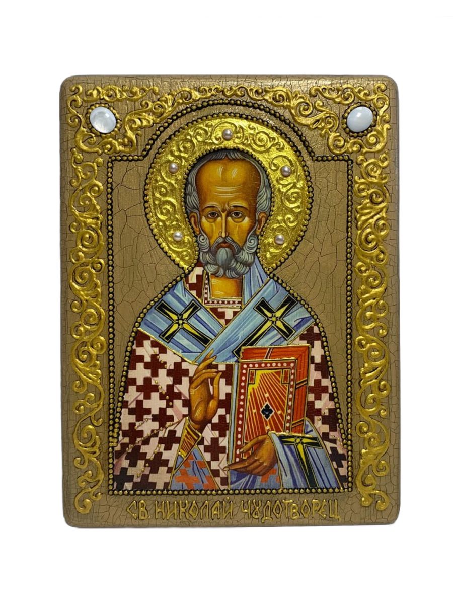 Настольная икона ''Святитель Николай, архиепископ Мир Ликийский (Мирликийский), чудотворец'' на море