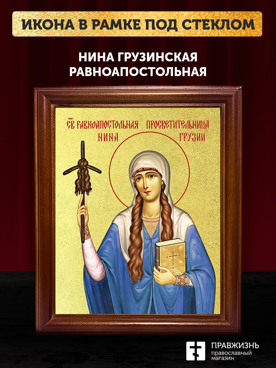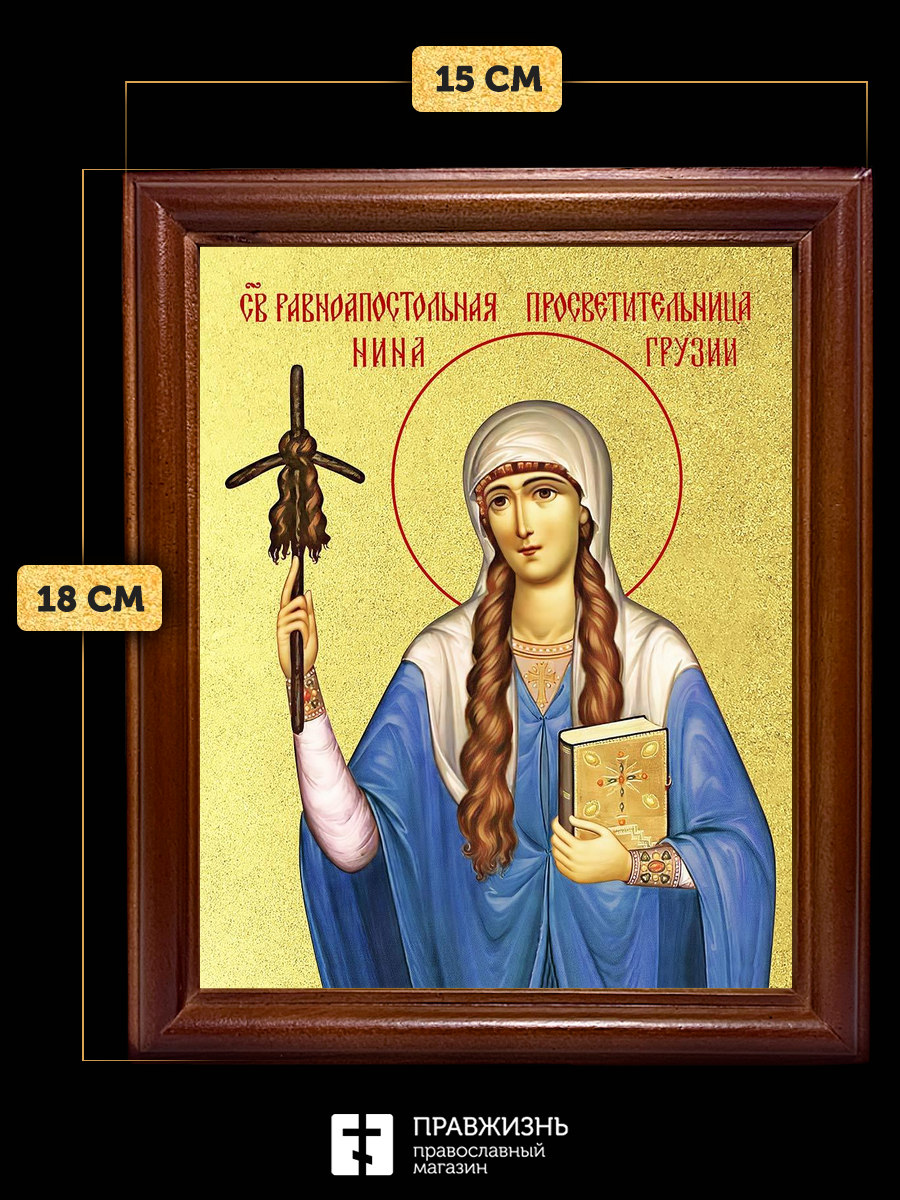 Икона Нина Грузинская равноапостольная с золочением, деревянная рамка со стеклом 15х18х2 см 111