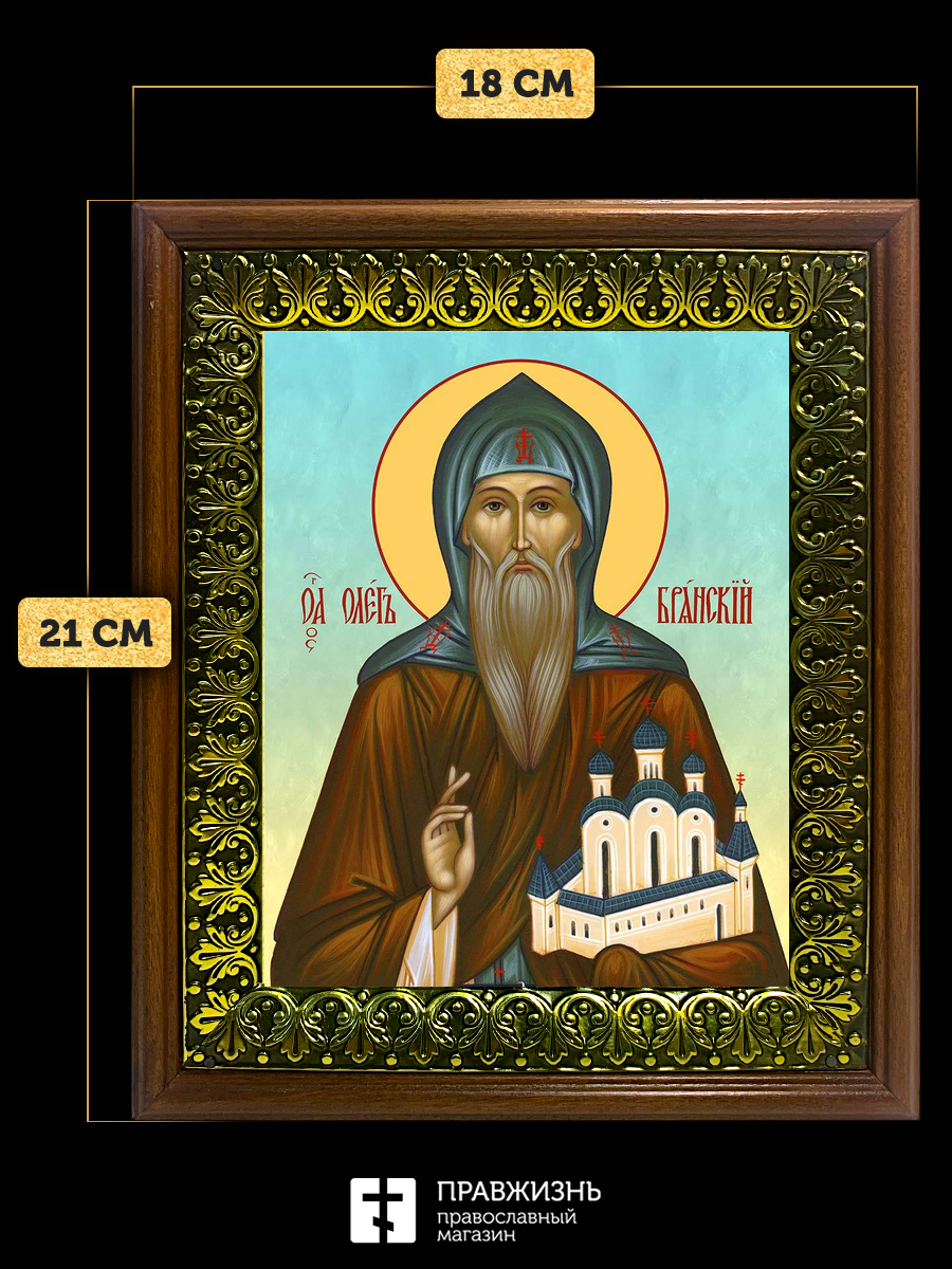 Икона Олег Брянский благоверный князь, деревянная рамка с басмой и стеклом 18х21х2,5 см 112