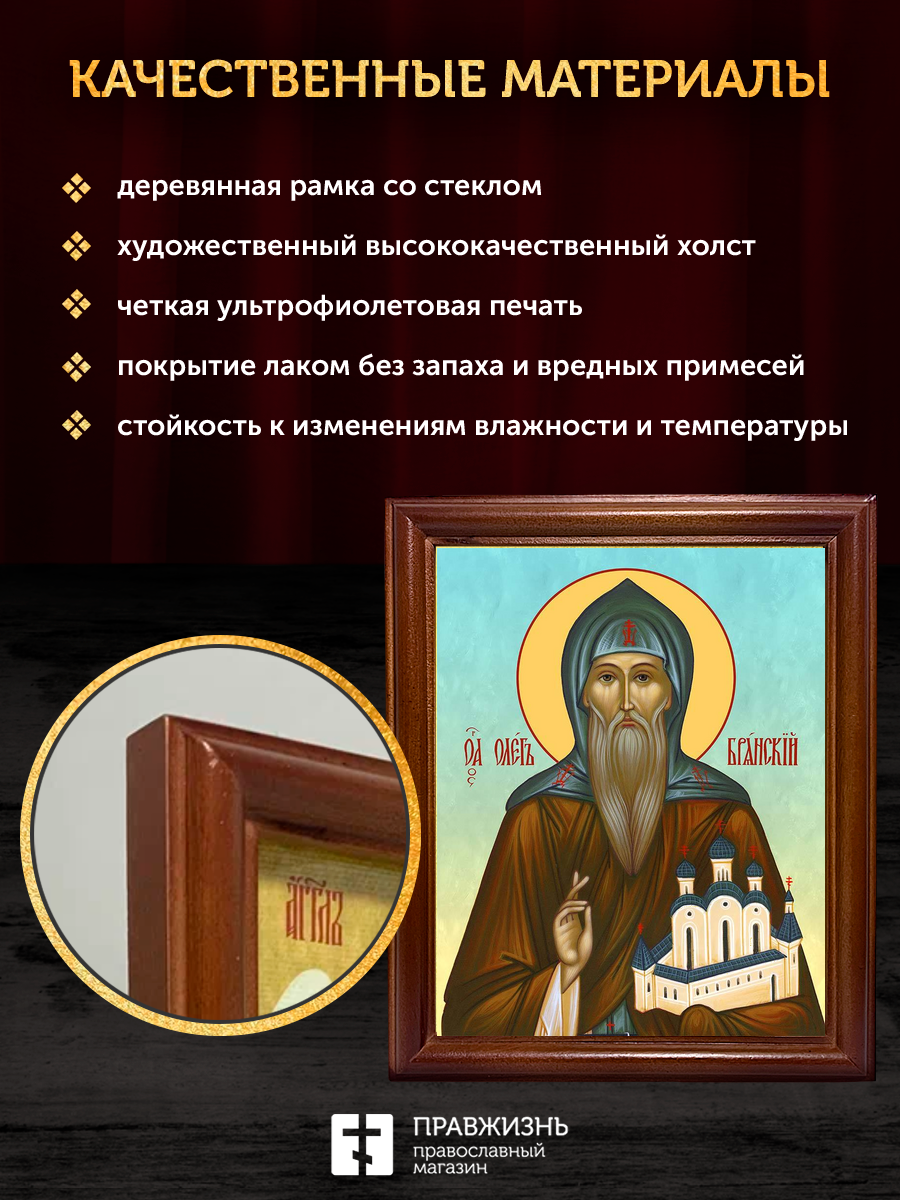 Икона Олег Брянский благоверный князь, деревянная рамка со стеклом 15х18х2 см 112