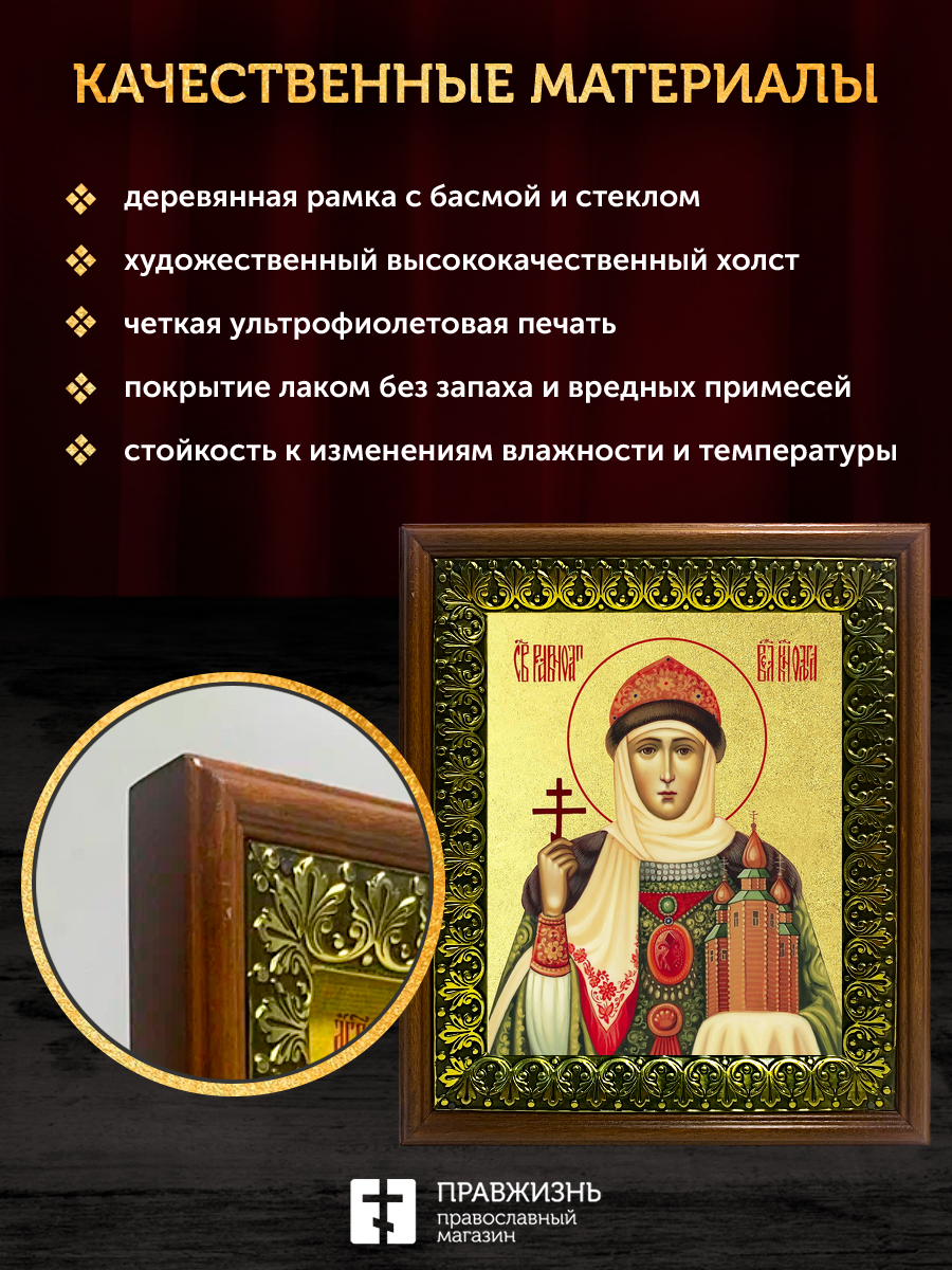Икона Ольга Великая княгиня с золочением, деревянная рамка с басмой и стеклом 18х21х2,5 см 113