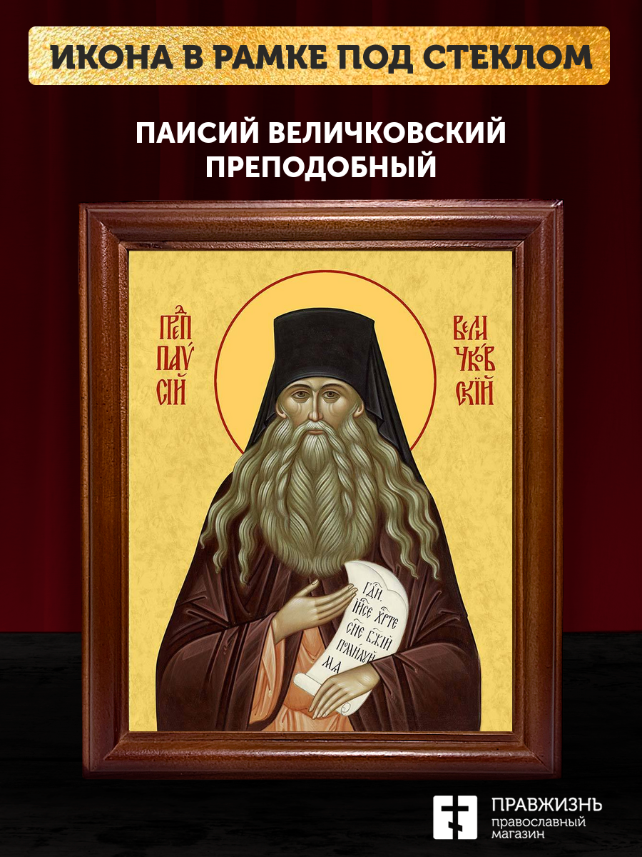 Икона Паисий Величковский преподобный старец, деревянная рамка со стеклом 15х18х2 см 1248