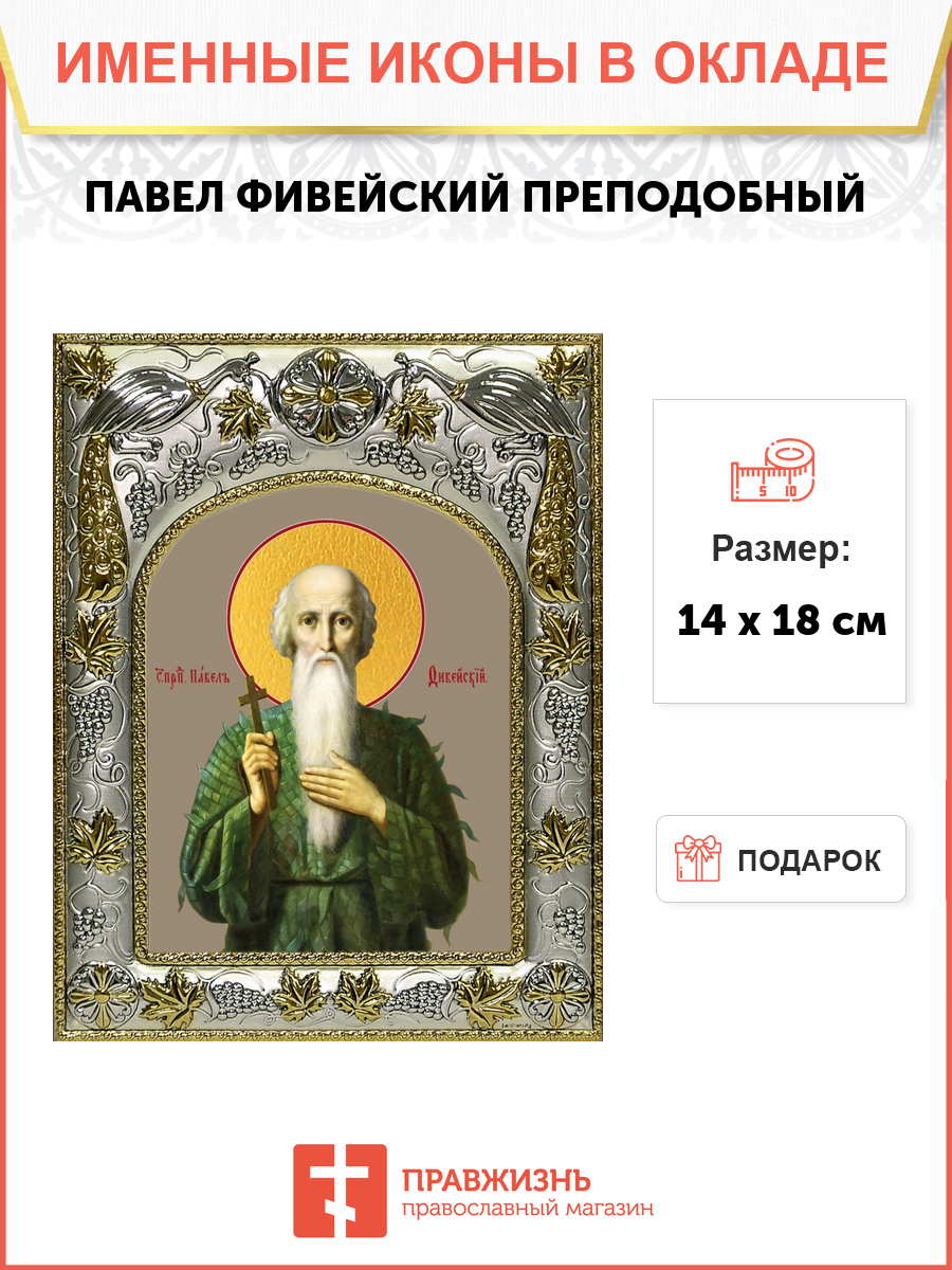 Икона освященная "Павел Фивейский, преподобный", 14x18 см
