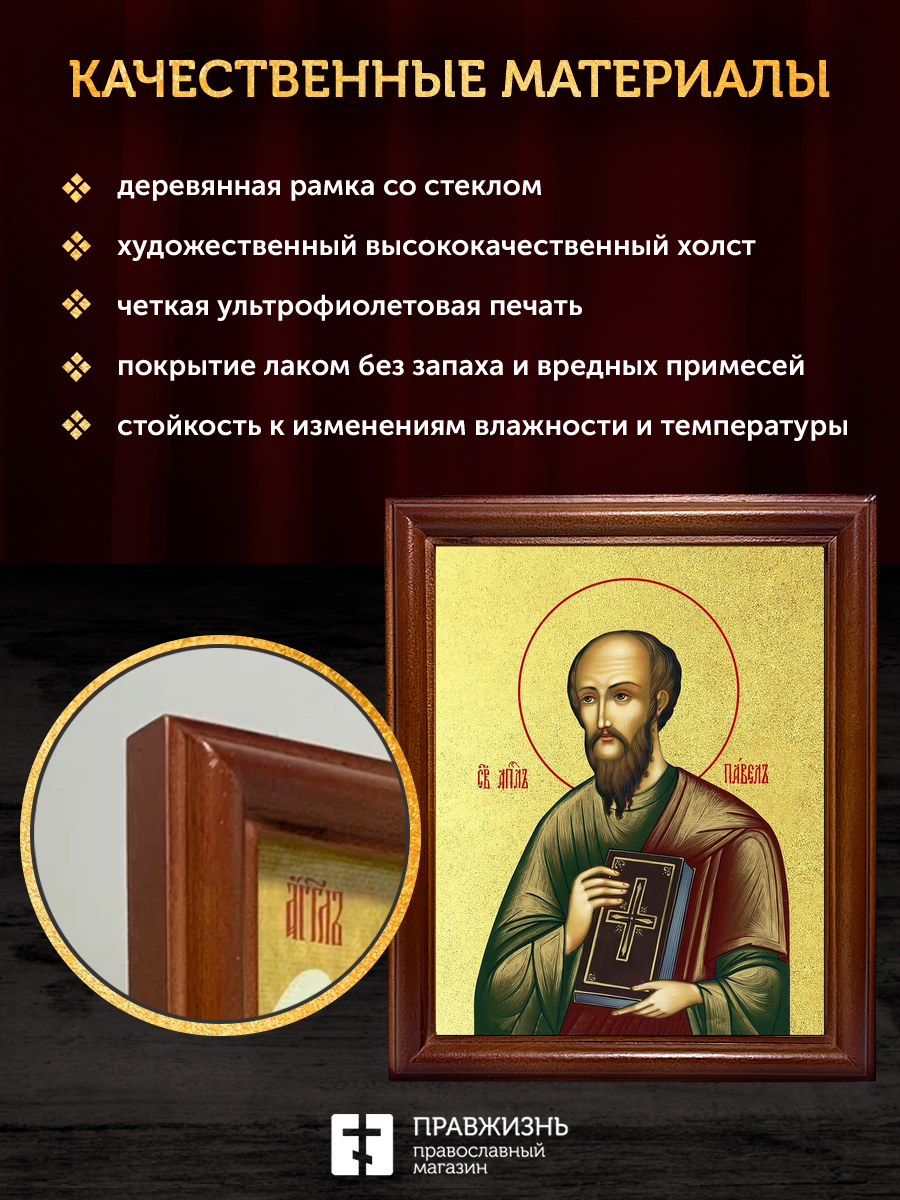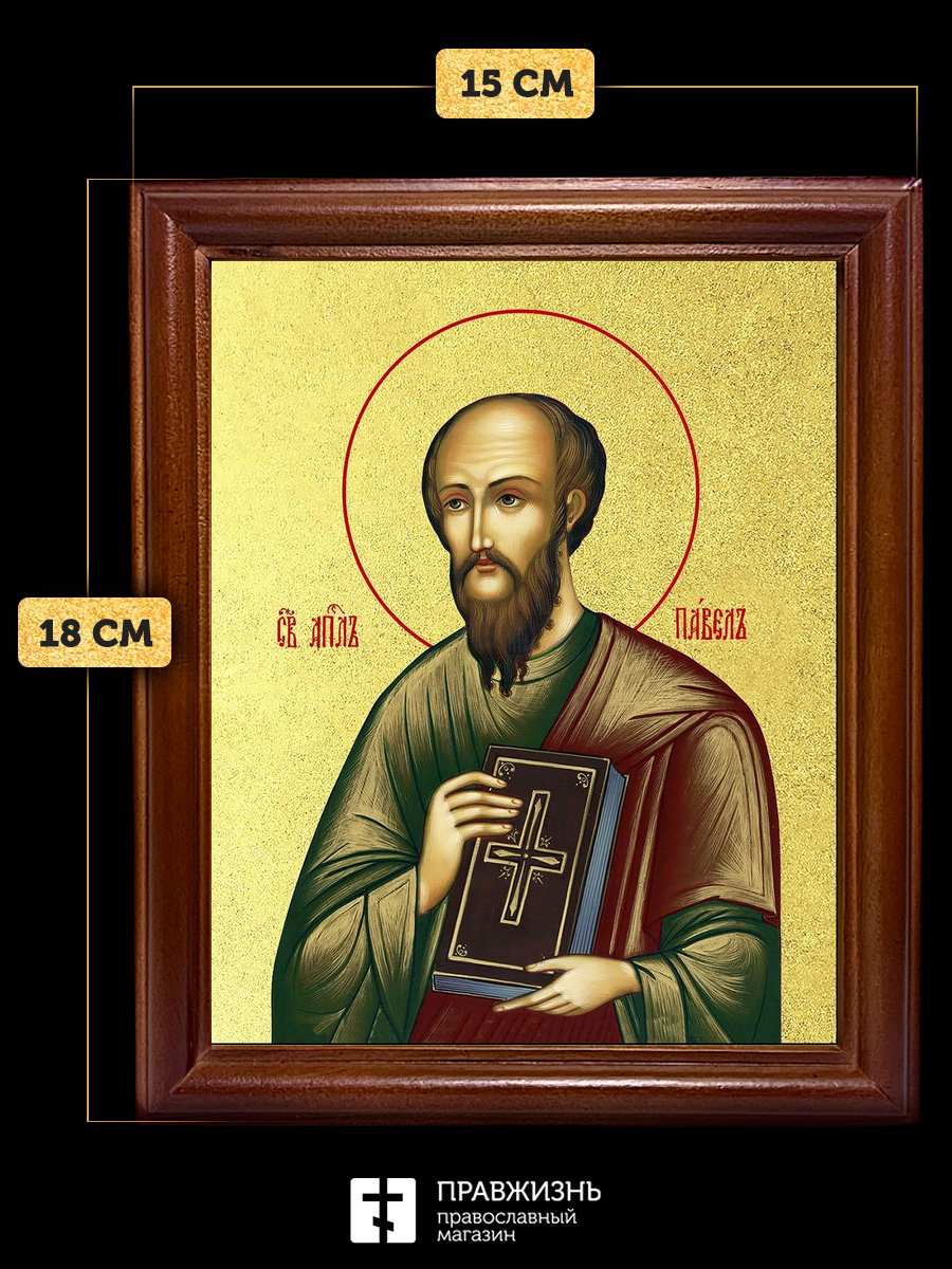 Икона Павел апостол с золочением, деревянная рамка со стеклом 15х18х2 см 114