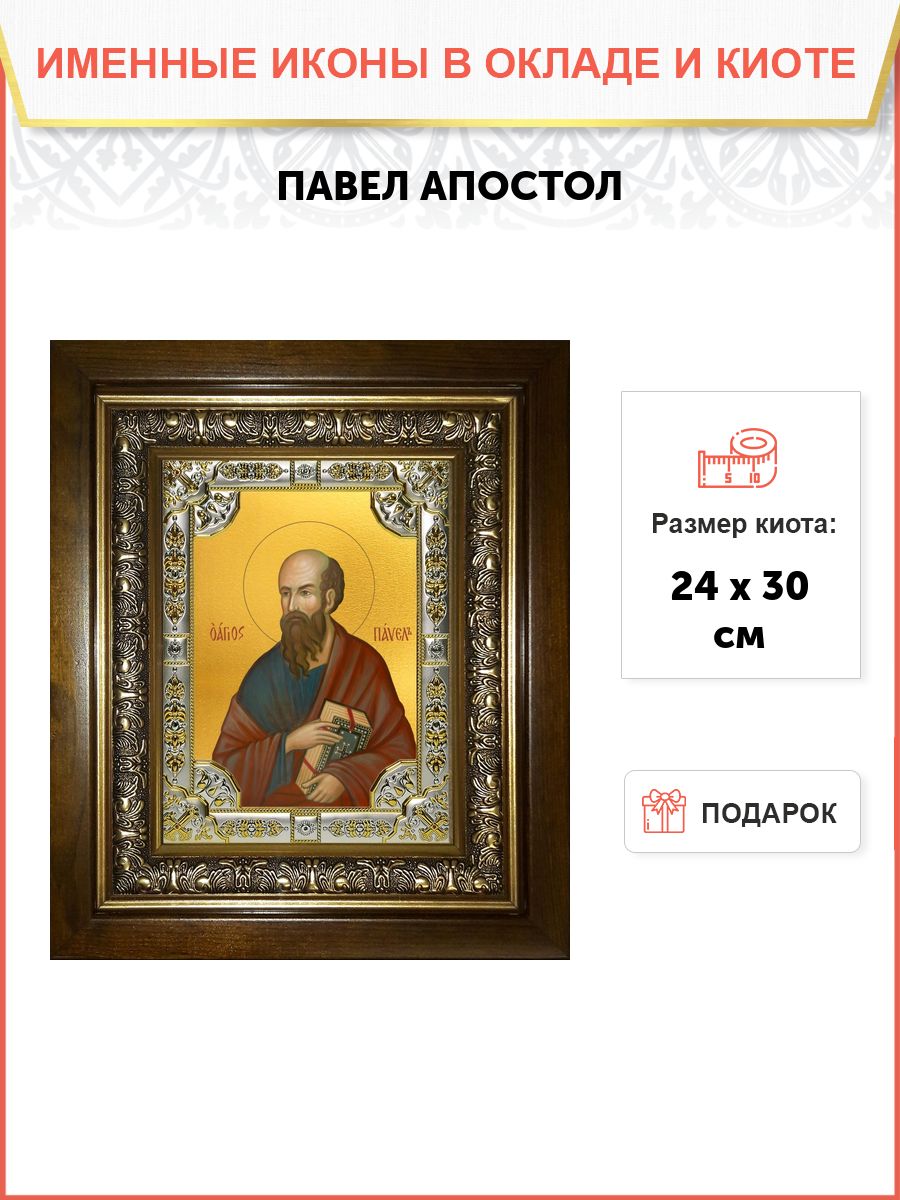 Икона Павел апостол в деревянном киоте