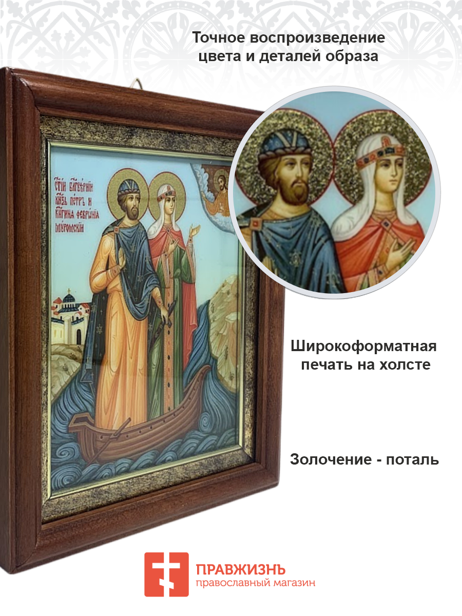 Икона Петр и Феврония Муромские чудотворцы с золочением 18х21х4 см