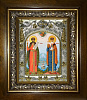 Икона Петр и Феврония святые благоверные князья, в деревяном киоте