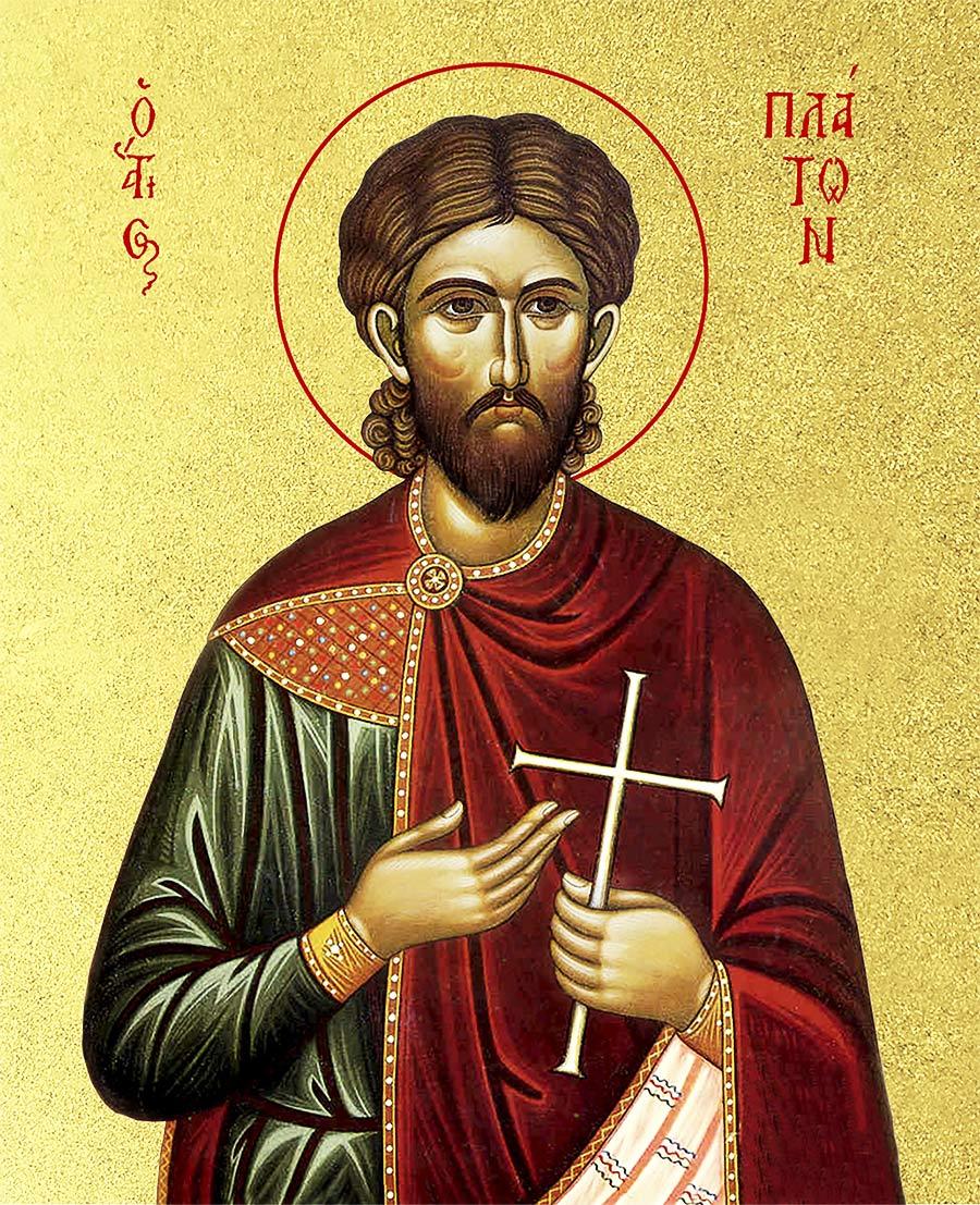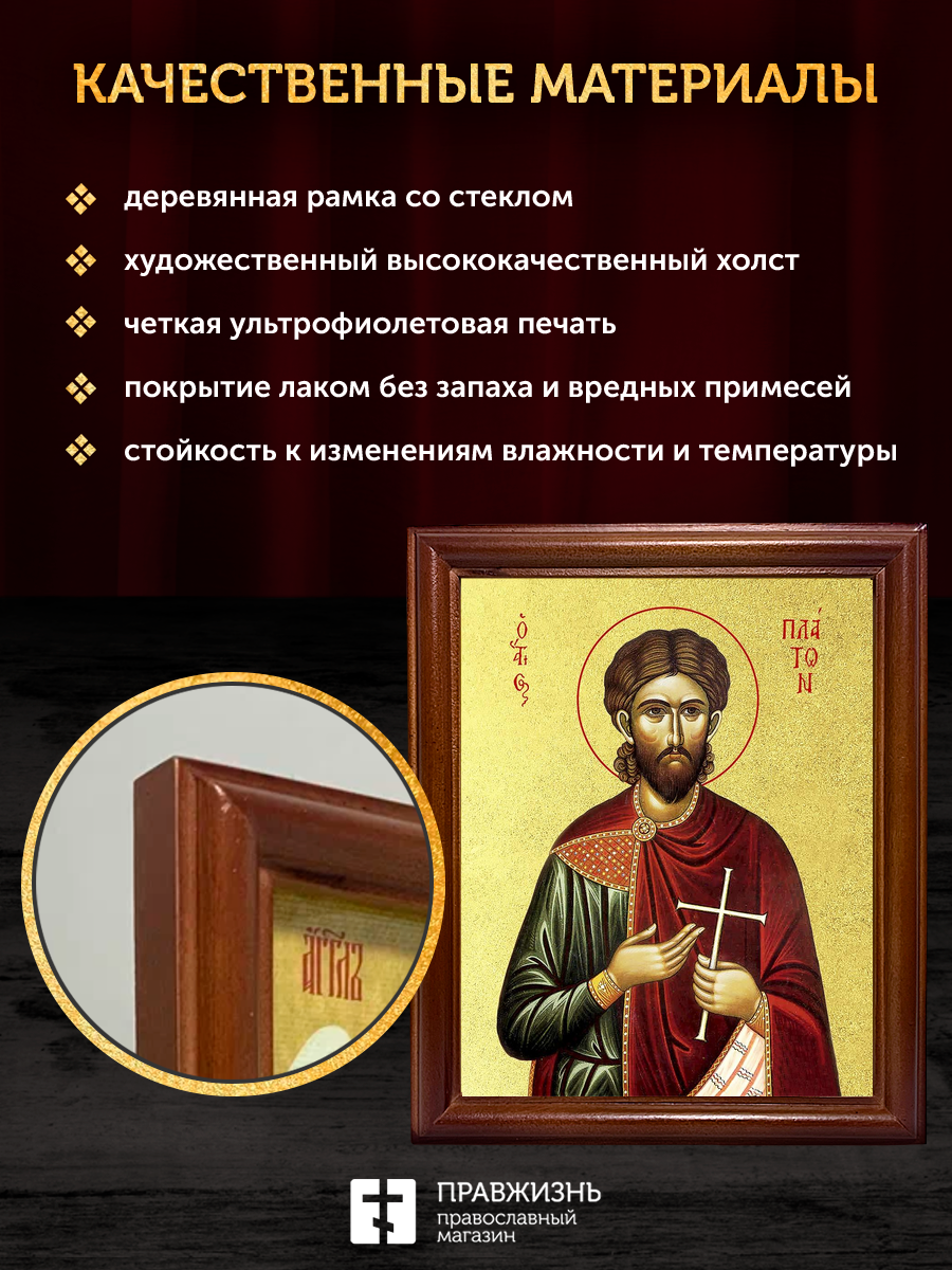 Икона Платон Анкирский мученик с золочением, деревянная рамка со стеклом 15х18х2 см 174