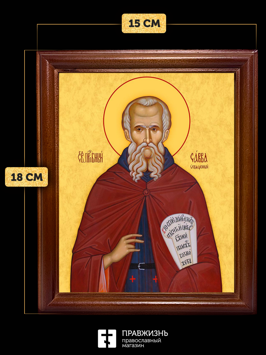 Икона Савва Освященный преподобный, деревянная рамка со стеклом 15х18х2 см 199