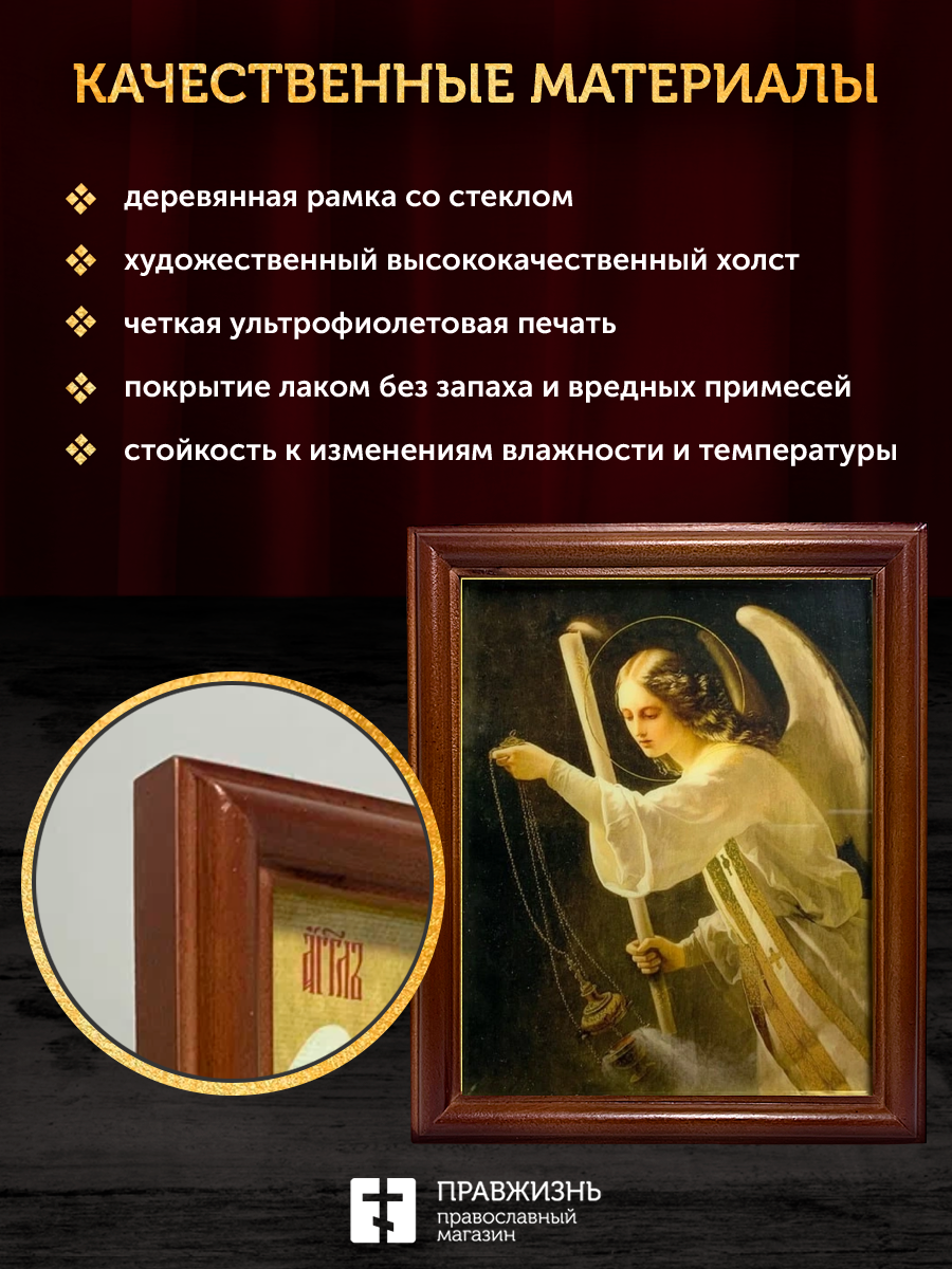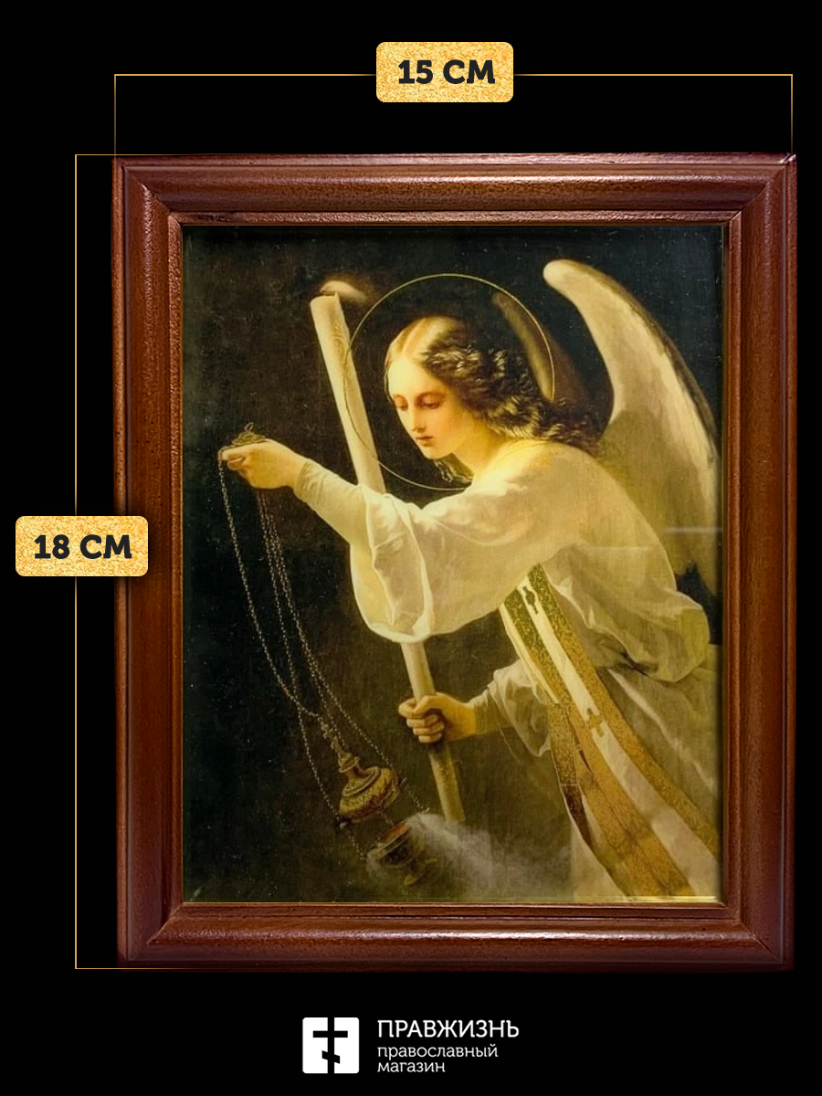 Икона Архангел Селафиил Ангел Молитвы с золочением, деревянная рамка со стеклом 15х18х2 см 1225