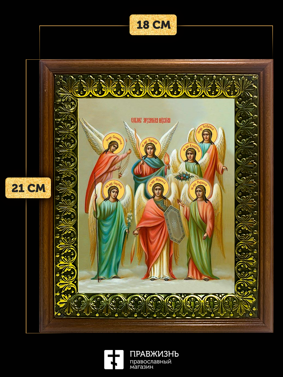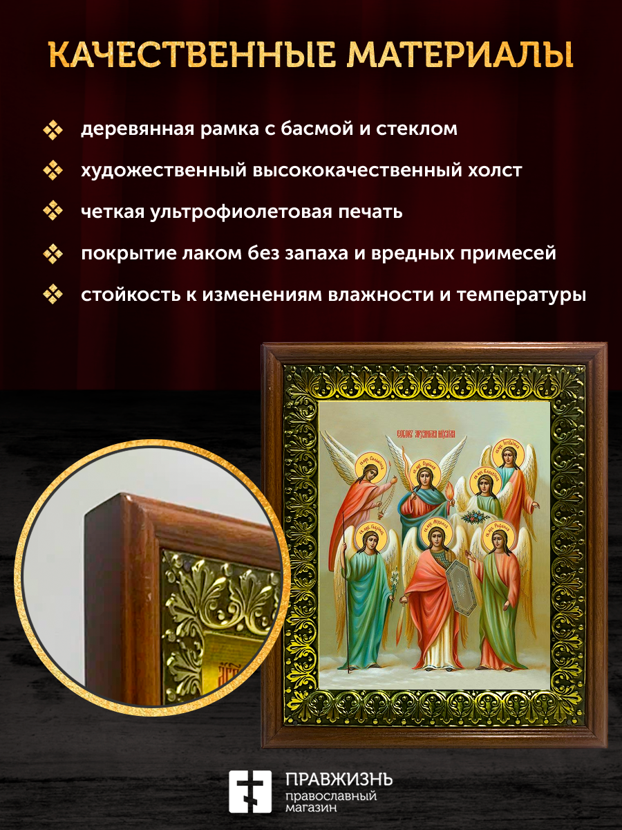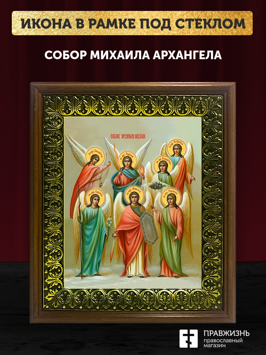 Икона собор Михаила Архангела, деревянная рамка с басмой и стеклом 18х21х2,5 см 105
