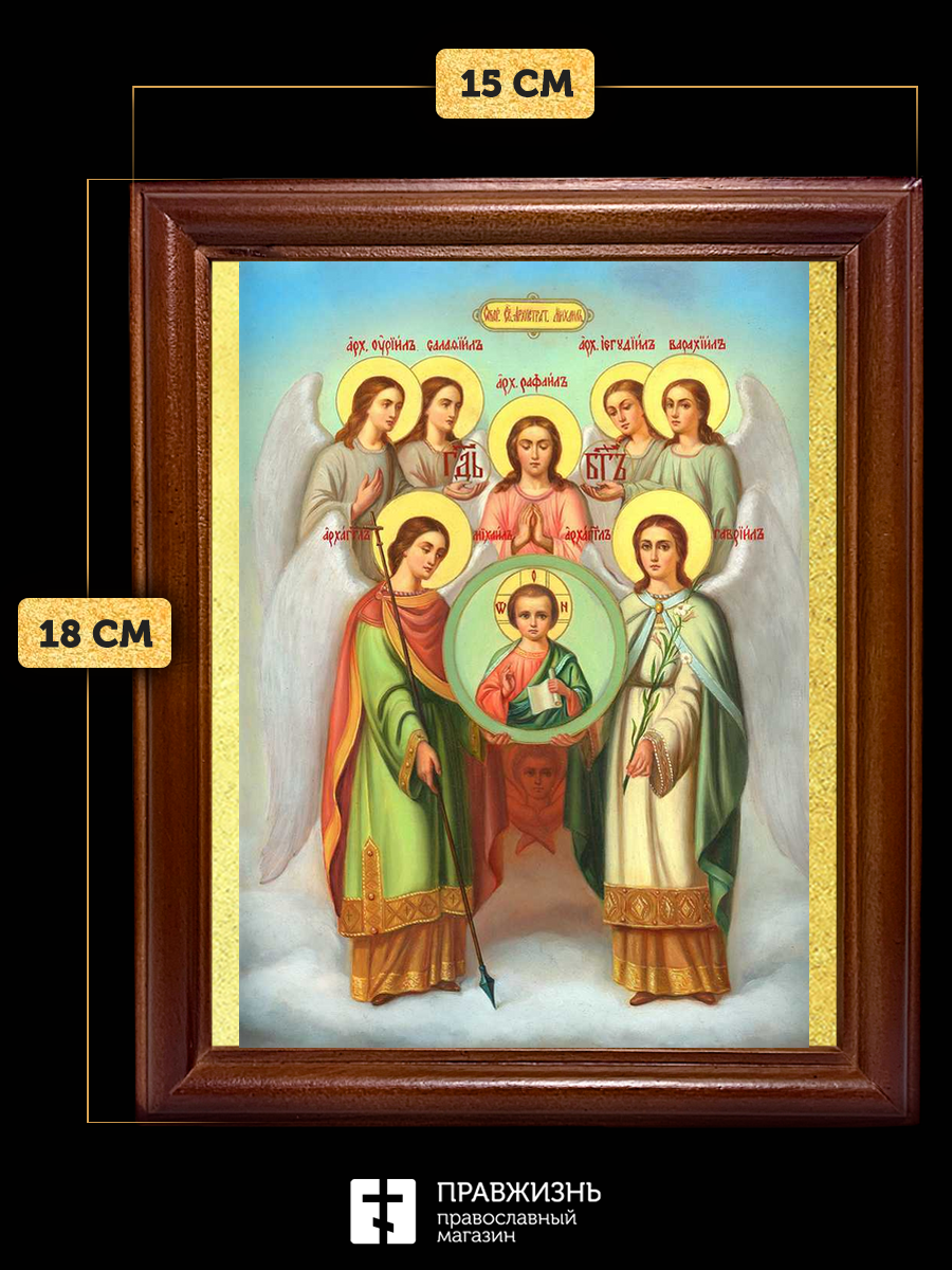 Икона собор Михаила Архангела, деревянная рамка со стеклом 15х18х2 см 105