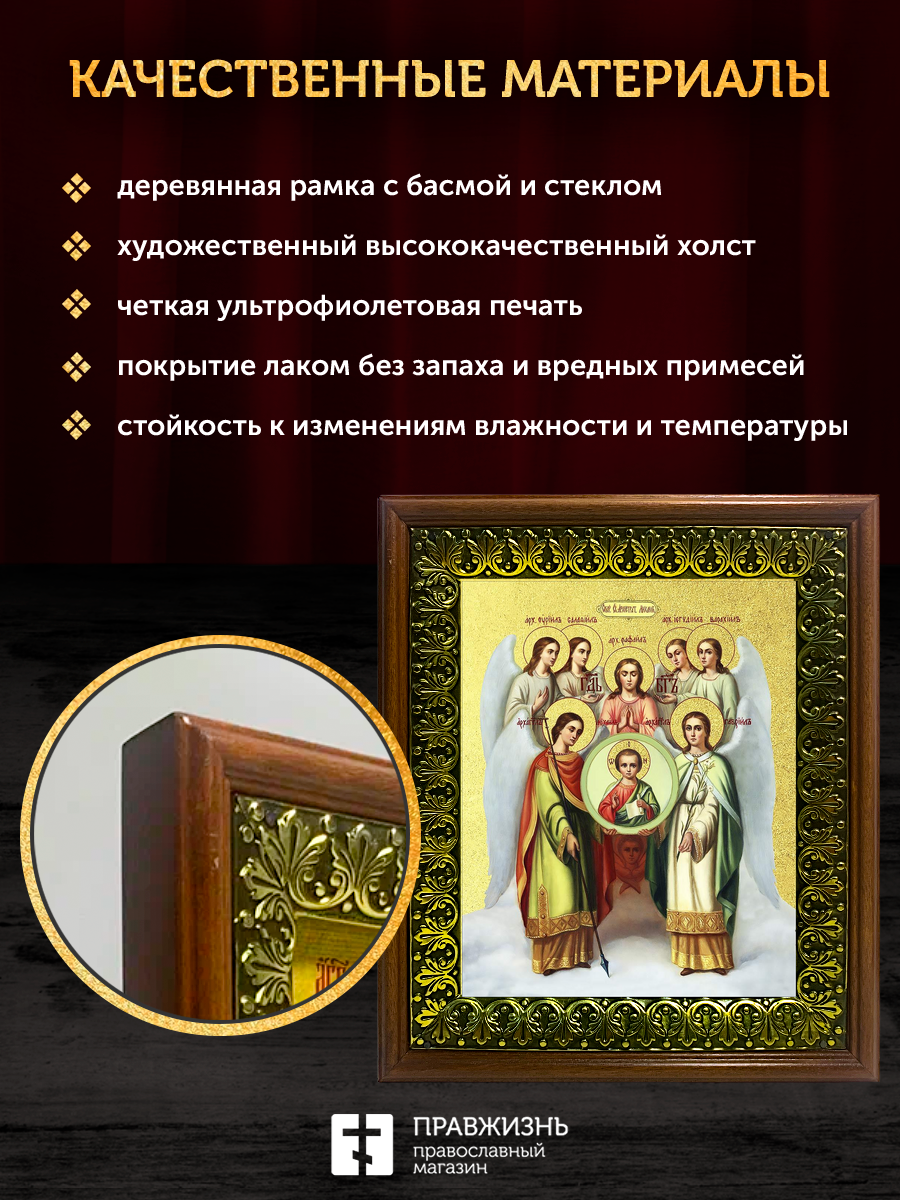 Икона Собор Михаила Архангела с золочением, деревянная рамка с басмой и стеклом 18х21х2,5 см