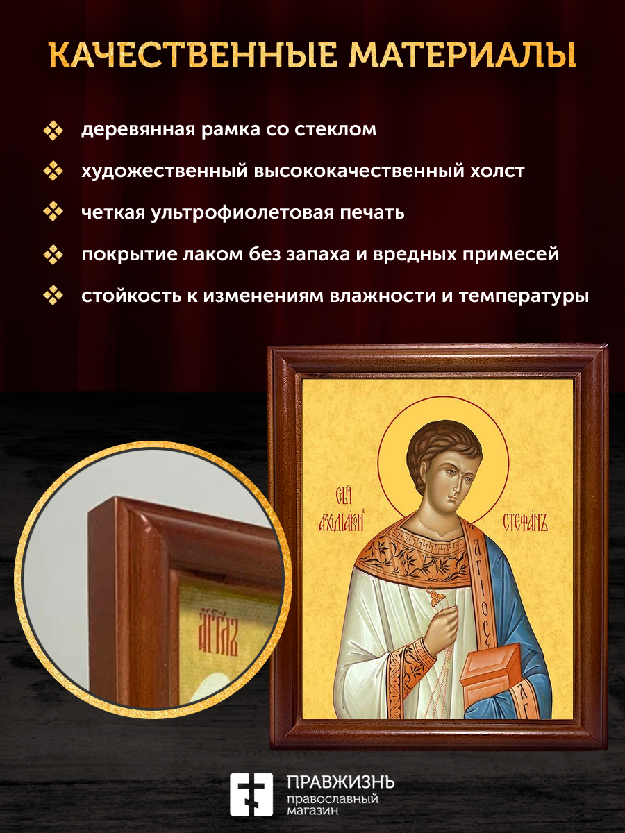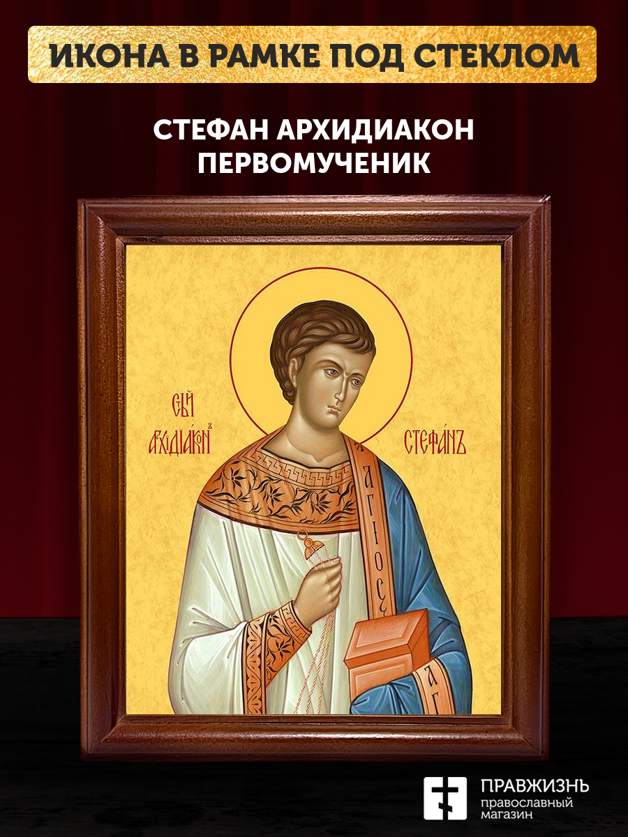 Икона Стефан архидиакон первомученик, деревянная рамка со стеклом 15х18х2 см 318